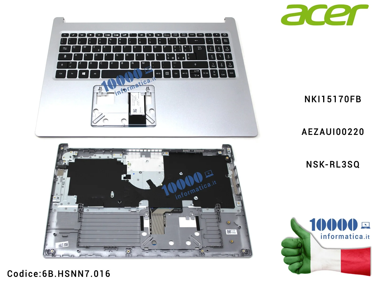 Tastiera Italiana Top Case Superiore ACER Aspire A515-55 A515-55G (SILVER) 6BHSNN7016 NKI15170FB AEZAUI00220 NSK-RL3SQ