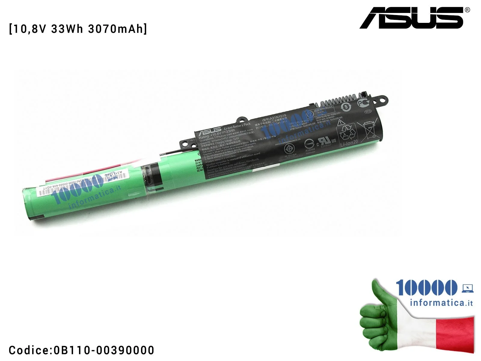 Batteria A31N1519 ORIGINALE ASUS X540 X540LJ X540L X540S X540SA X540Y F540 F540S F540SA [10,8V 33Wh 3070mAh] 0B110-00390100