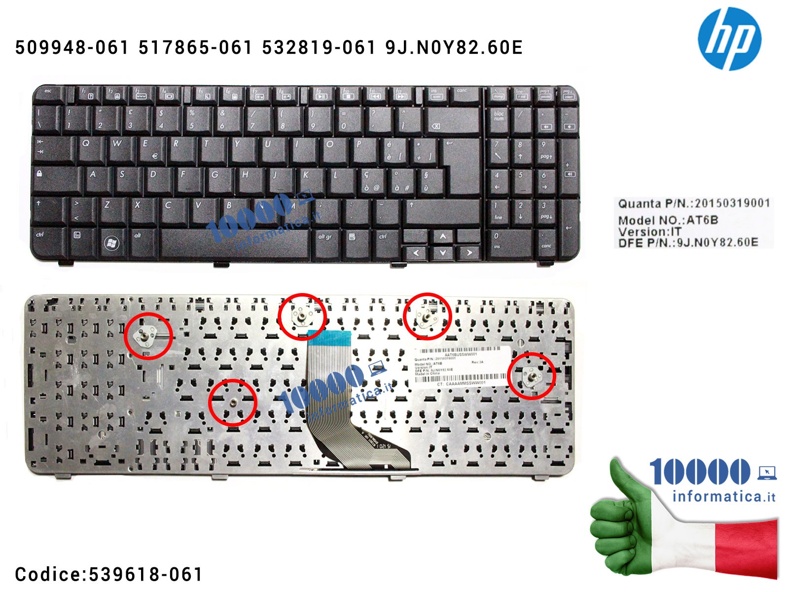 Tastiera Italiana HP CQ61 G61 Series 509948-061 517865-061 532819-061 539618-061 9J.N0Y82.60E 9J.N6P82.I6J85 AE0P6I00010