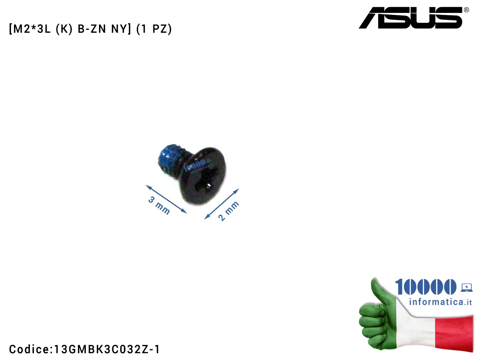 13GMBK3C032Z-1 Vite di Fissaggio Notebook [M2*3L (K) B-ZN NY] (1 PZ) ASUS G550JK K84C K84HR K84L K84 N550 N550JA N550JK N550J... 13GMBK3C032Z-1 Vite di Fissaggio Notebook [M2*3L (K) B-ZN NY] (1 PZ) ASUS G550JK K84C K84HR K84L K84 N550 N550JA N550JK N550J...