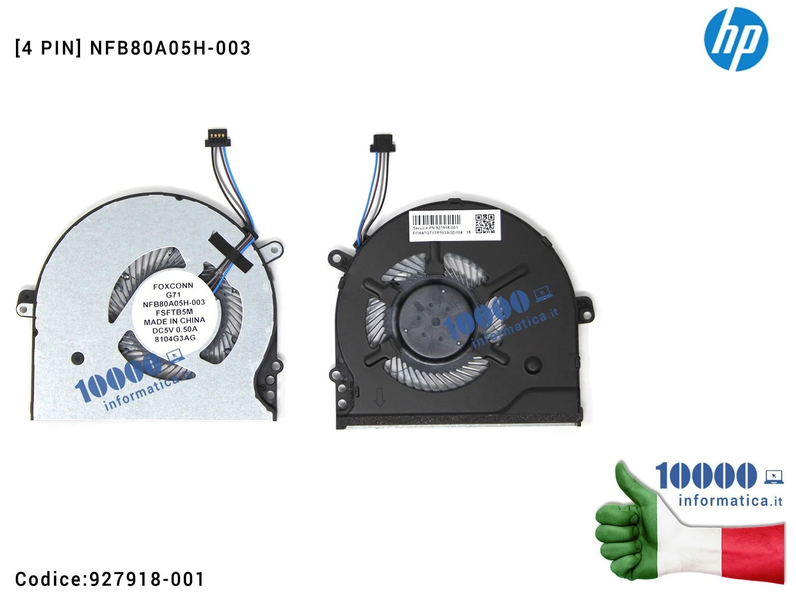 Ventola Fan CPU HP Pavilion 15-CC 15-CK 14-BK 14-BP TPN-Q191 TPN-Q201 [4 PIN] 927918-001 NFB80A05H-003