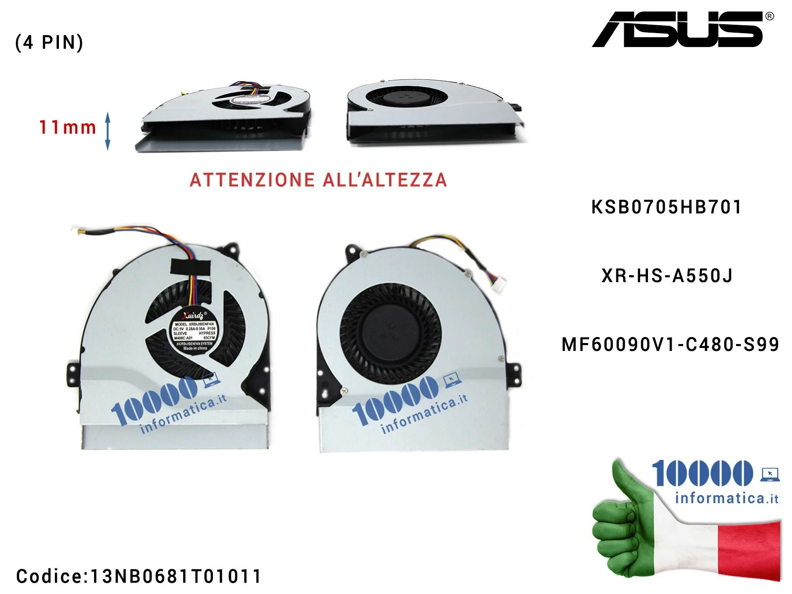 Ventola Fan CPU ASUS [11 mm] F550 F550J F550JK K550J K550JK A550J A550JK X550JX X550JD X550JF X550VQ (4 PIN) KSB0705HB701 XR-HS-