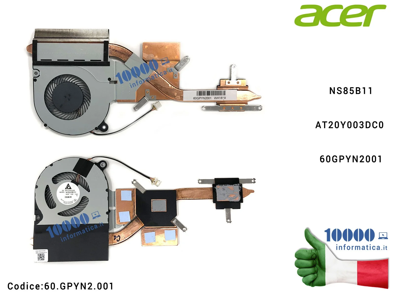 Ventola di Raffreddamento Fan CPU + Dissipatore Heatsink ACER Aspire A515-41G NS85B11AT20Y003DC0 60GPYN2001