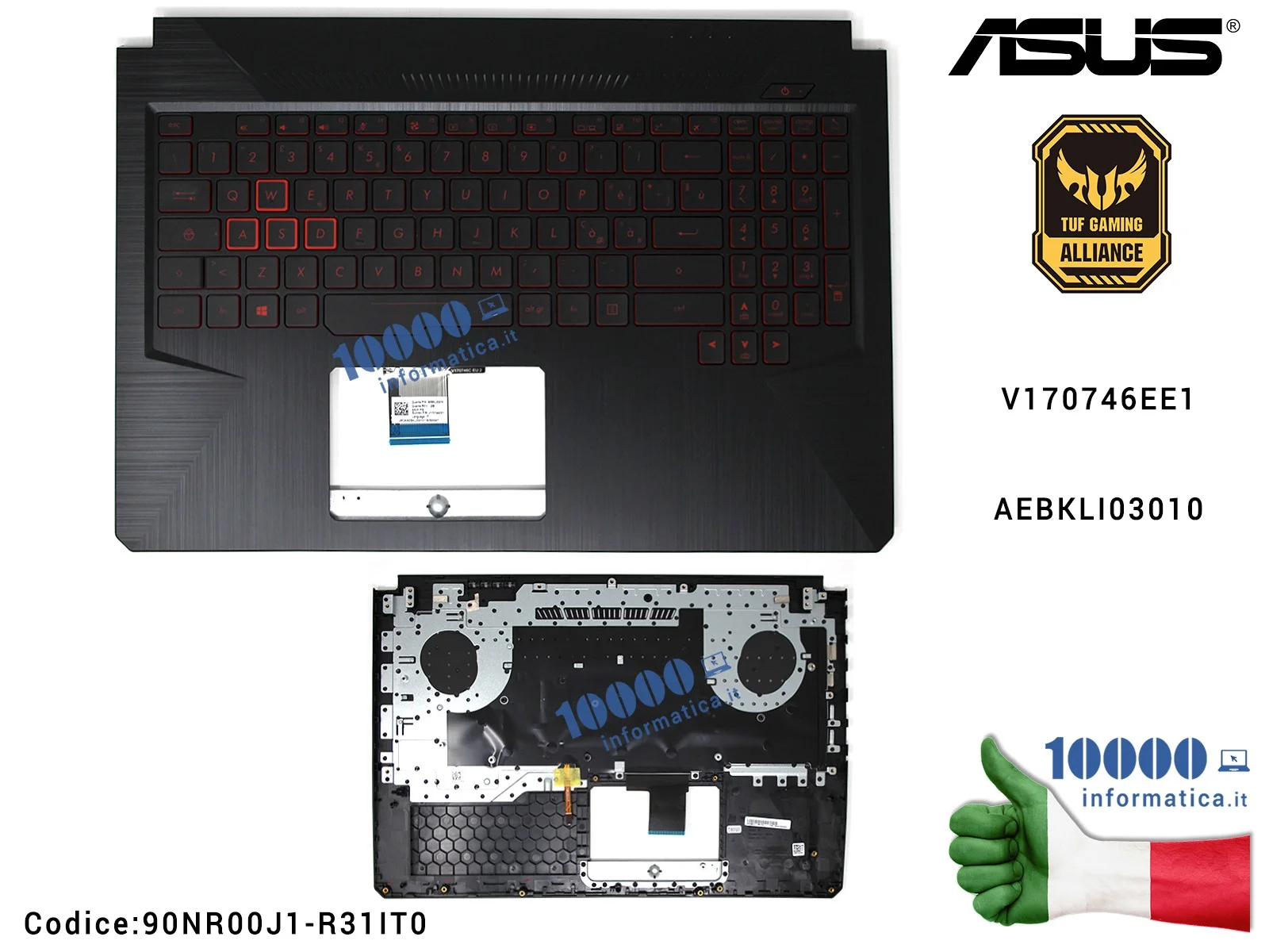 Tastiera Italiana Completa di Top Case Superiore ASUS TUF Gaming FX504 [NERA] FX504G FX504GD FX504GE FX504GM [RETROILLUMINATA] T