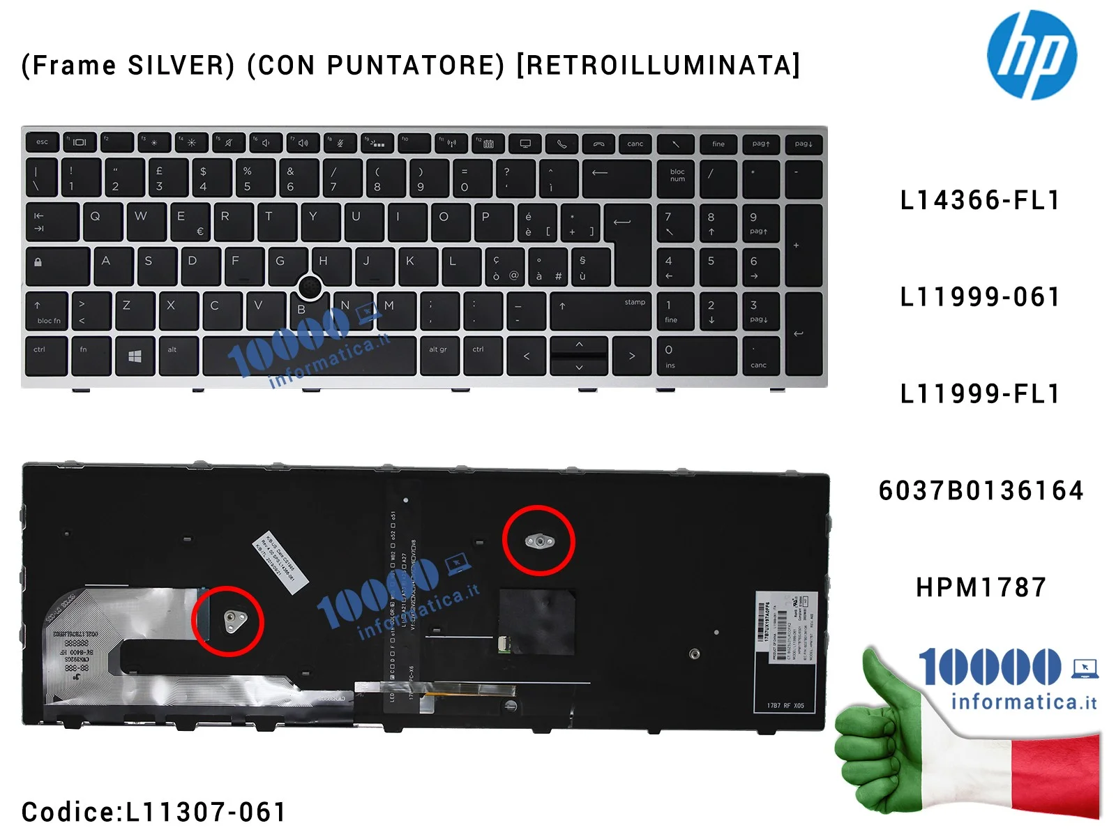 Tastiera Italiana Retroilluminata HP EliteBook 850 G5 (Frame SILVER) (CON PUNTATORE) L14366-FL1L11999-061 L11999-FL1 6037B013616