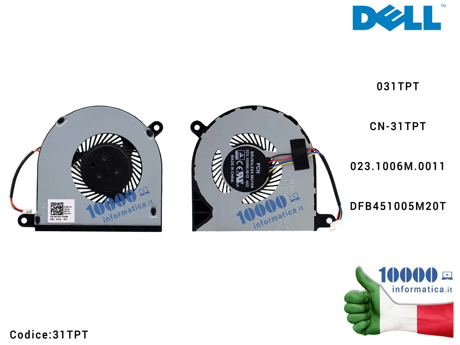 Ventola di Raffreddamento Fan CPU DELL Inspiron 5368 5378 5568 7569 13-7000 15-5000 023.1006M.0011 031TPT CN-31TPT DFB451005M20T