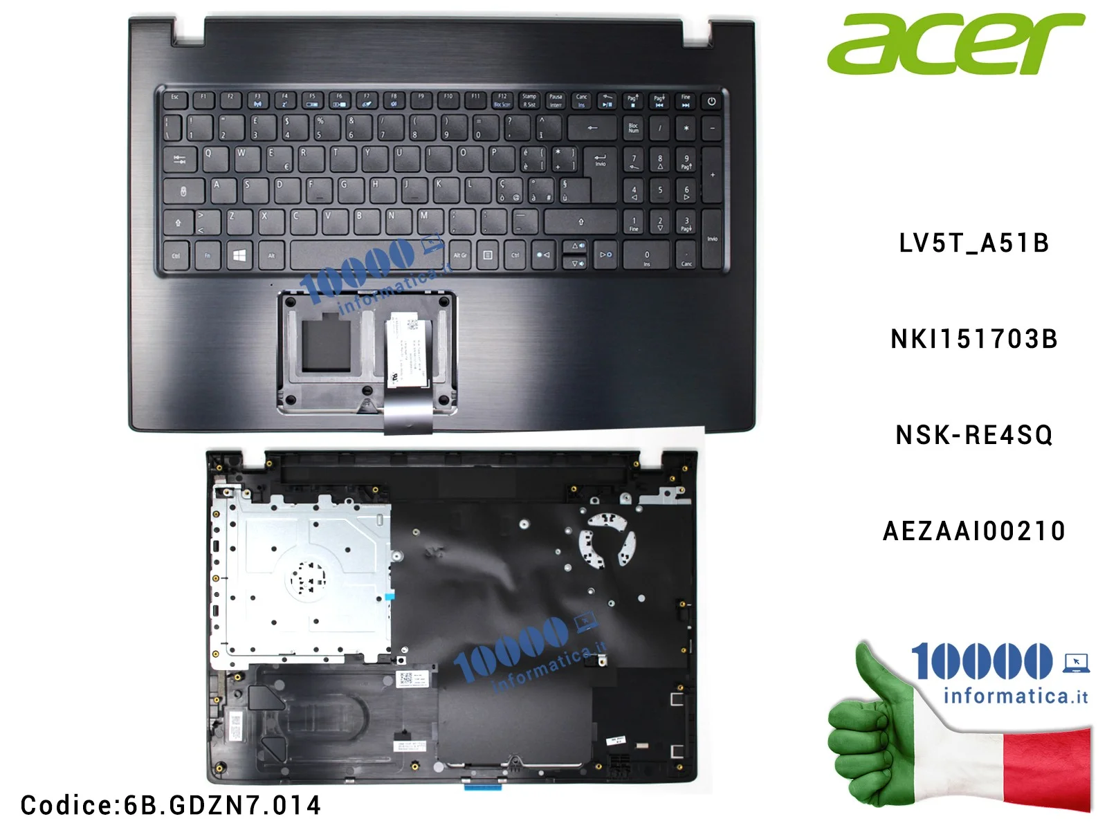 Tastiera Italiana Completa di Top Case Superiore ACER Aspire E5-523 E5-575 E5-575G TravelMate TMP259-G2-M TMP259-G2-MG TMP259-M