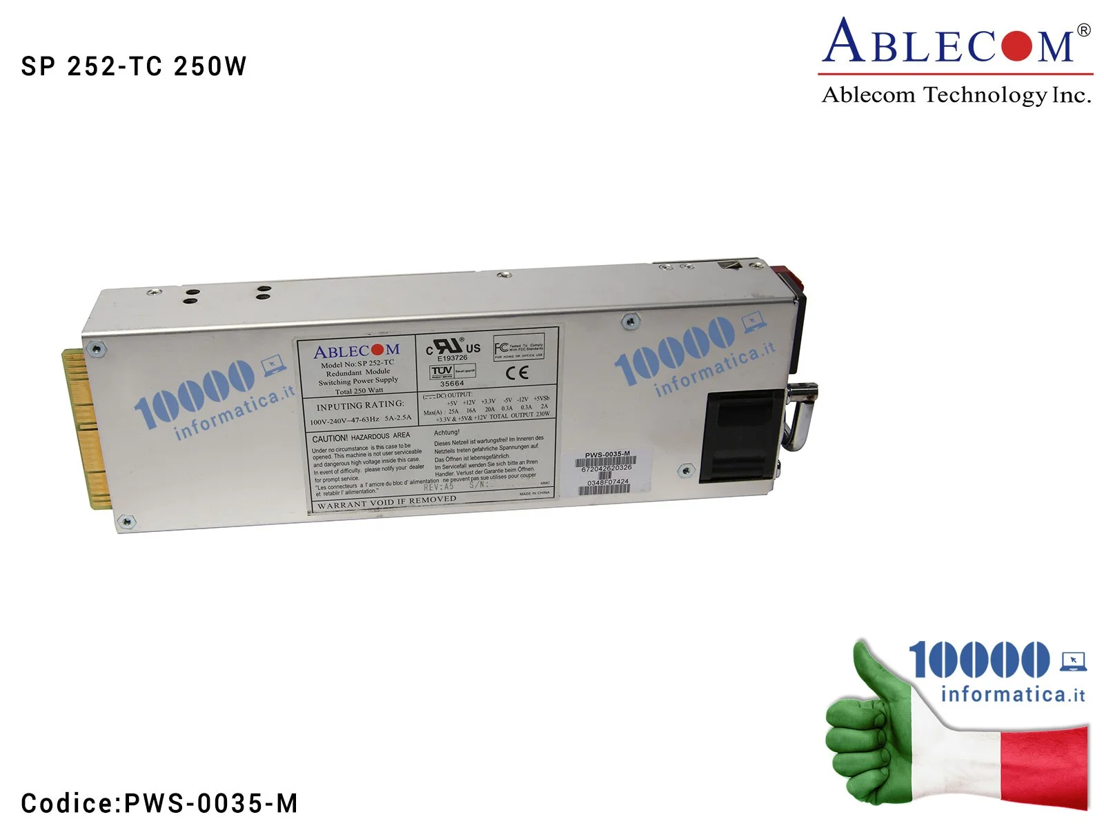 PWS-0035-M Alimentatore Supermicro ABLECOM SP 252-TC 250W HOT SWAP PWS-0035-M