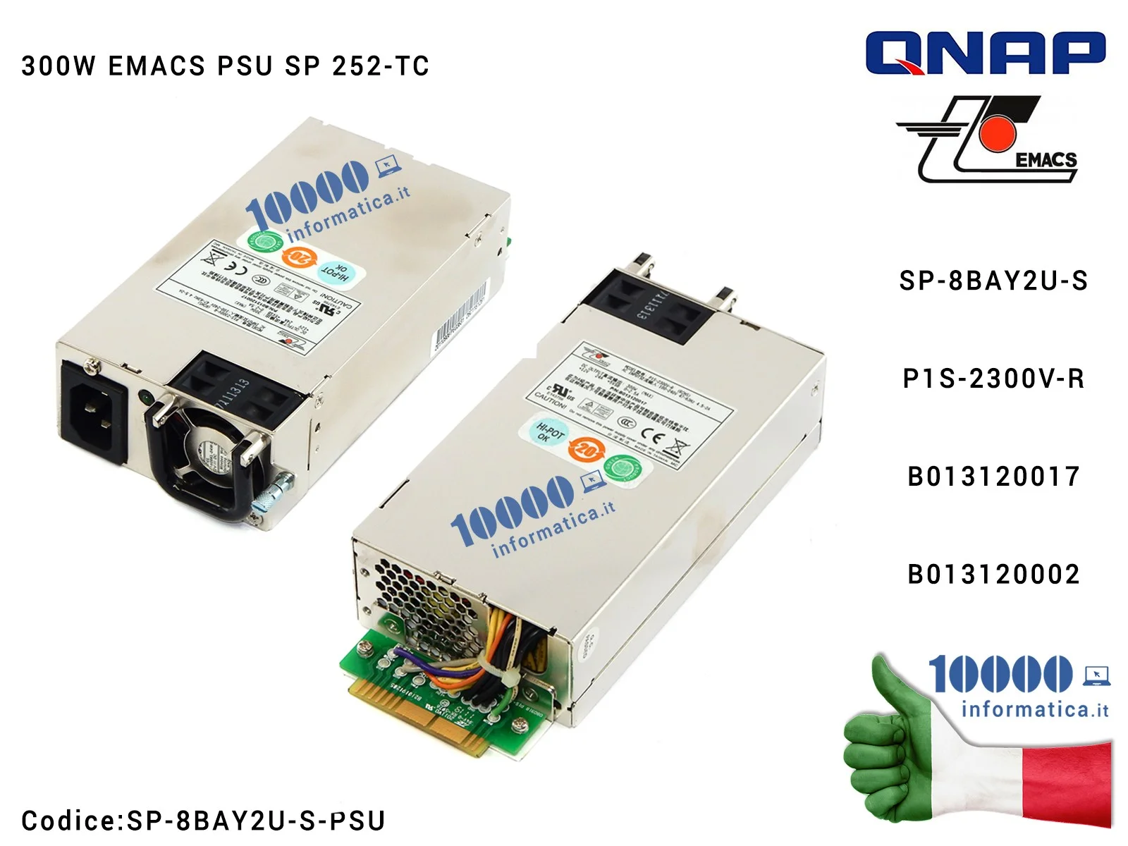Alimentatore QNAP 300W Power Supply SP 252-TC EMACS PSU P1S-2300V-R B013120017 B013120002 SP-8BAY2U-S-PSU TS-EC879U TS-879U TS-8