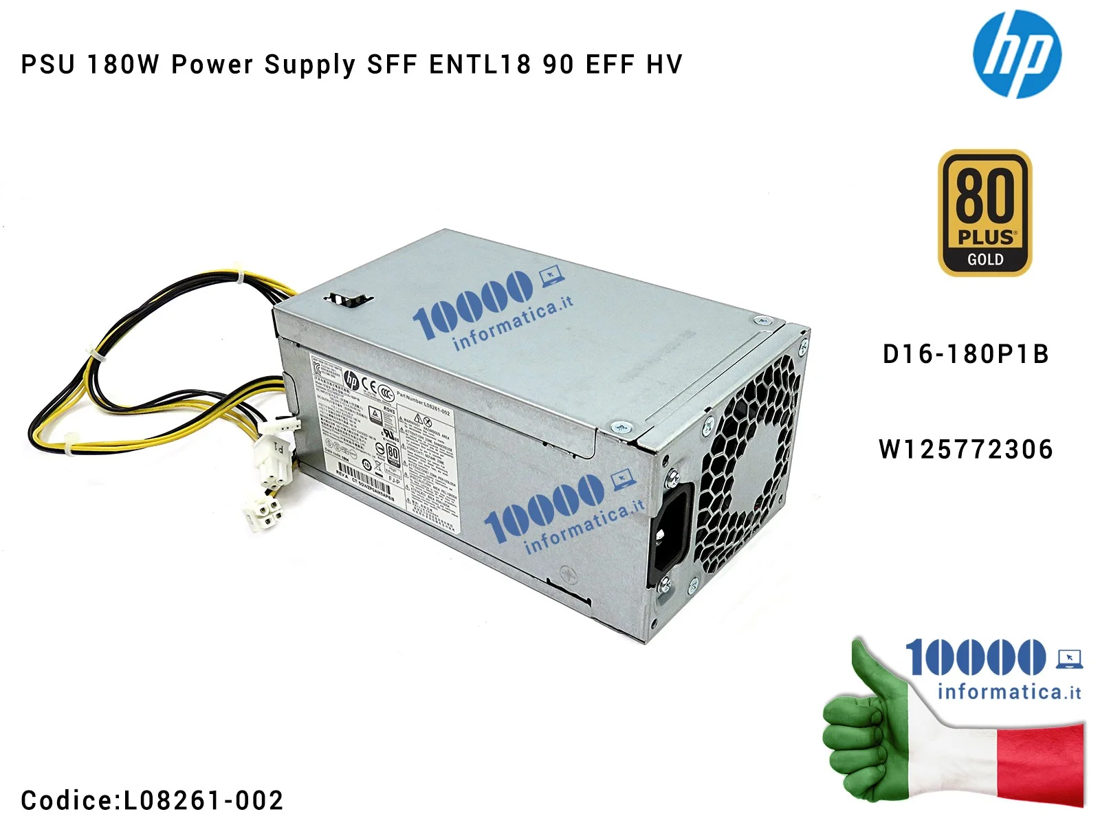 Alimentatore HP 180W Pavillion 590 590-P 590-P0100NA PSU D16-180P1B Power Supply SFF ENTL18 90 EFF HV 80 Plus Gold L08660-800 L0
