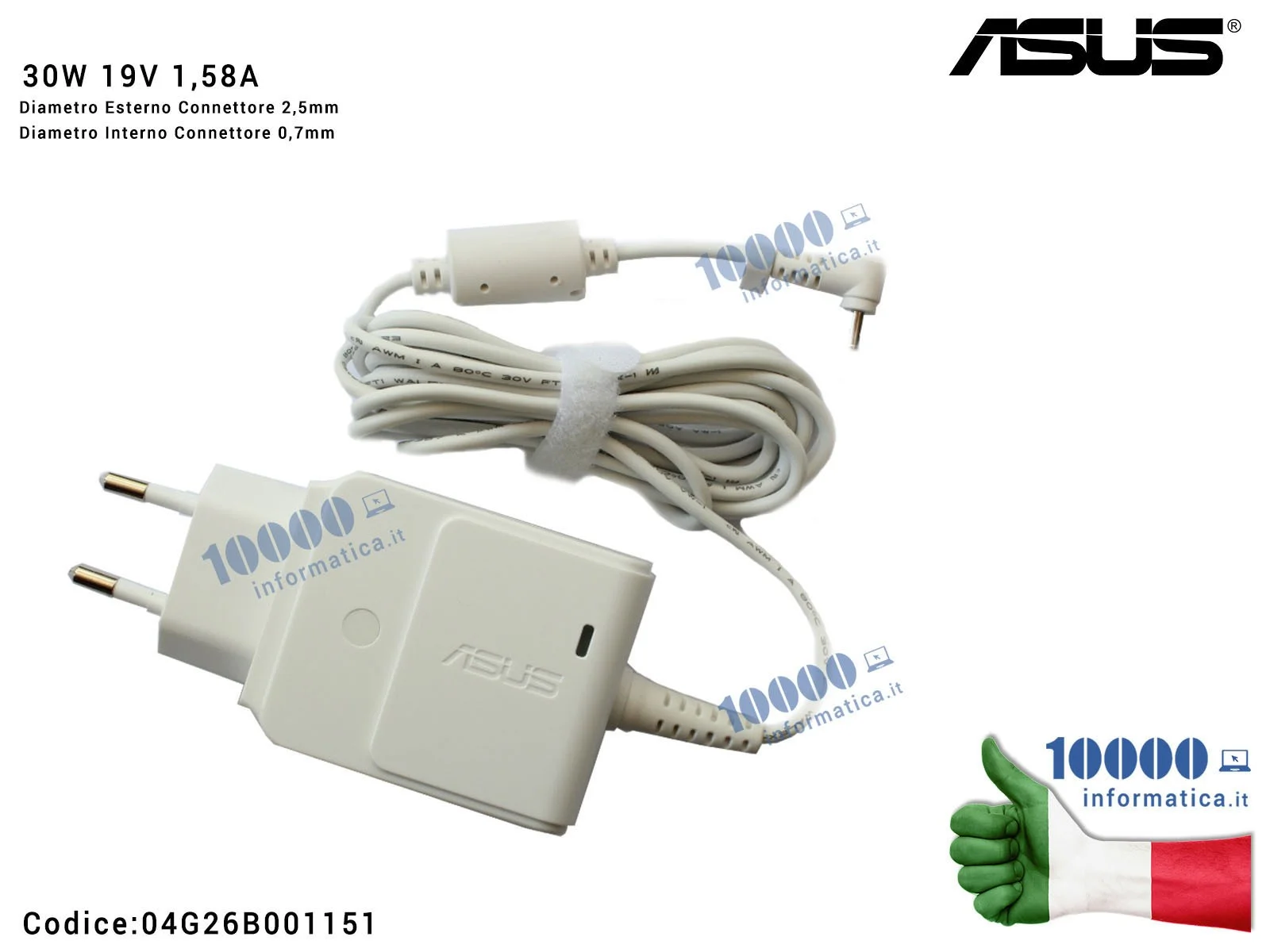 ![04G26B001151 Alimentatore ASUS 30W 19V 1,58A [2,5 x 0,7 mm] (BIANCO) Eee PC 1015CX 1025C X101CH R011CX](https://viaggioltredubbiedisagi.it/804-large_default/04g26b001151-alimentatore-asus-30w-19v-158a-25-x-07-mm-bianco-eee-pc-1015cx-1025c-x101ch-r011cx.jpg)