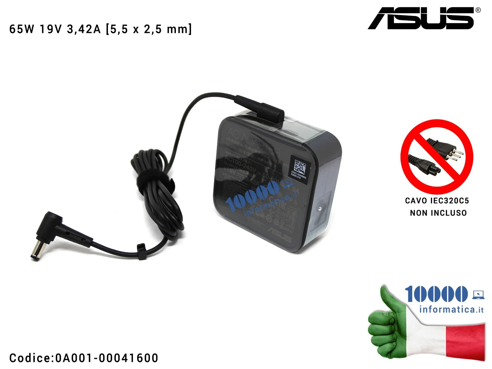 Alimentatore ASUS 65W 19V 3,42A [5,5 x 2,5 mm] 0A001-00042100 ADP-65GD 0A001-00448900 K555L K55 K56C K60I S550C S551L S56C X450C