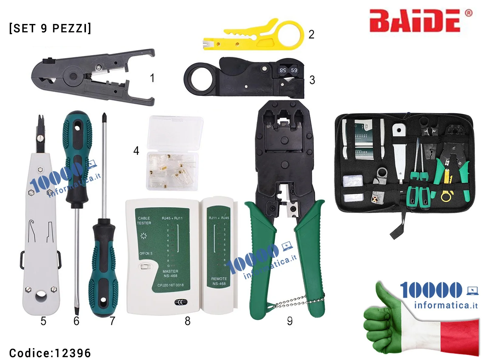 Borsetta Attrezzi Rete Kit Networking SPLINKTECH RJ1-KIT Set 9 pezzi per Pinza Crimpatrice 8P8C RJ45 Plug Tester LAN Connettori