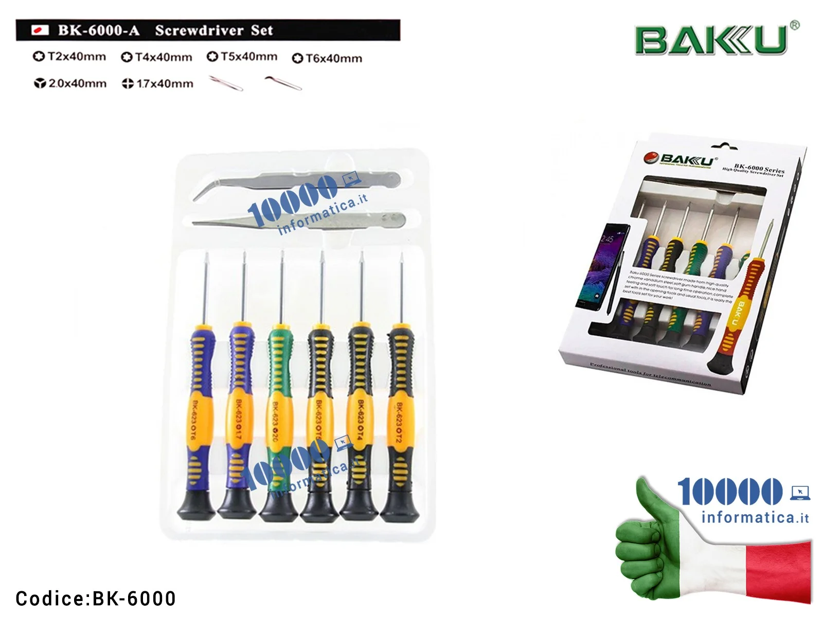 Set 6 pezzi Cacciaviti 2 Pinzette di Precisione BAKU BK-6000 Esagonali Torx mini Stella Kit Atrezzi per Riparazione Cellulari fa