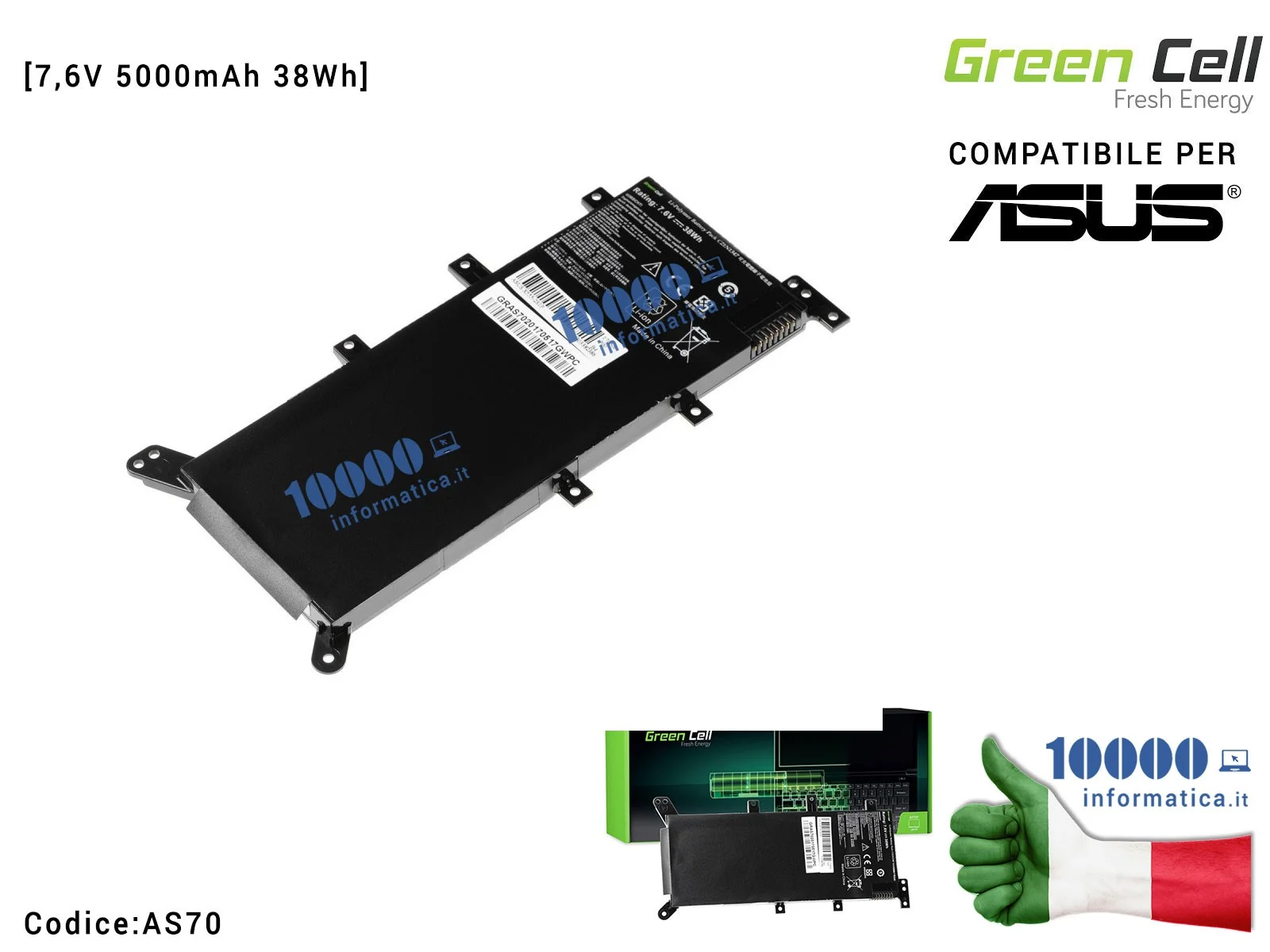 Batteria C21N1347 Green Cell Compatibile per ASUS A555L F555 F555L F555LD K555L K555LD R556 R556L R556LD R556LJ X555 X555L [5000