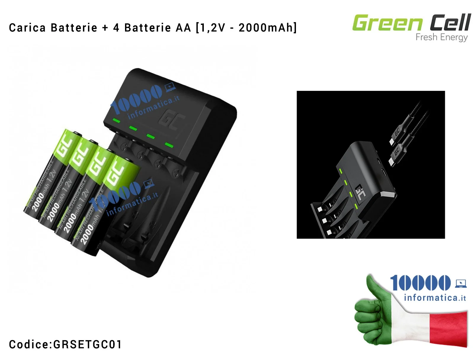 - Batterie all'idruro metallico di nichel AA Green Cell originali con una capacità