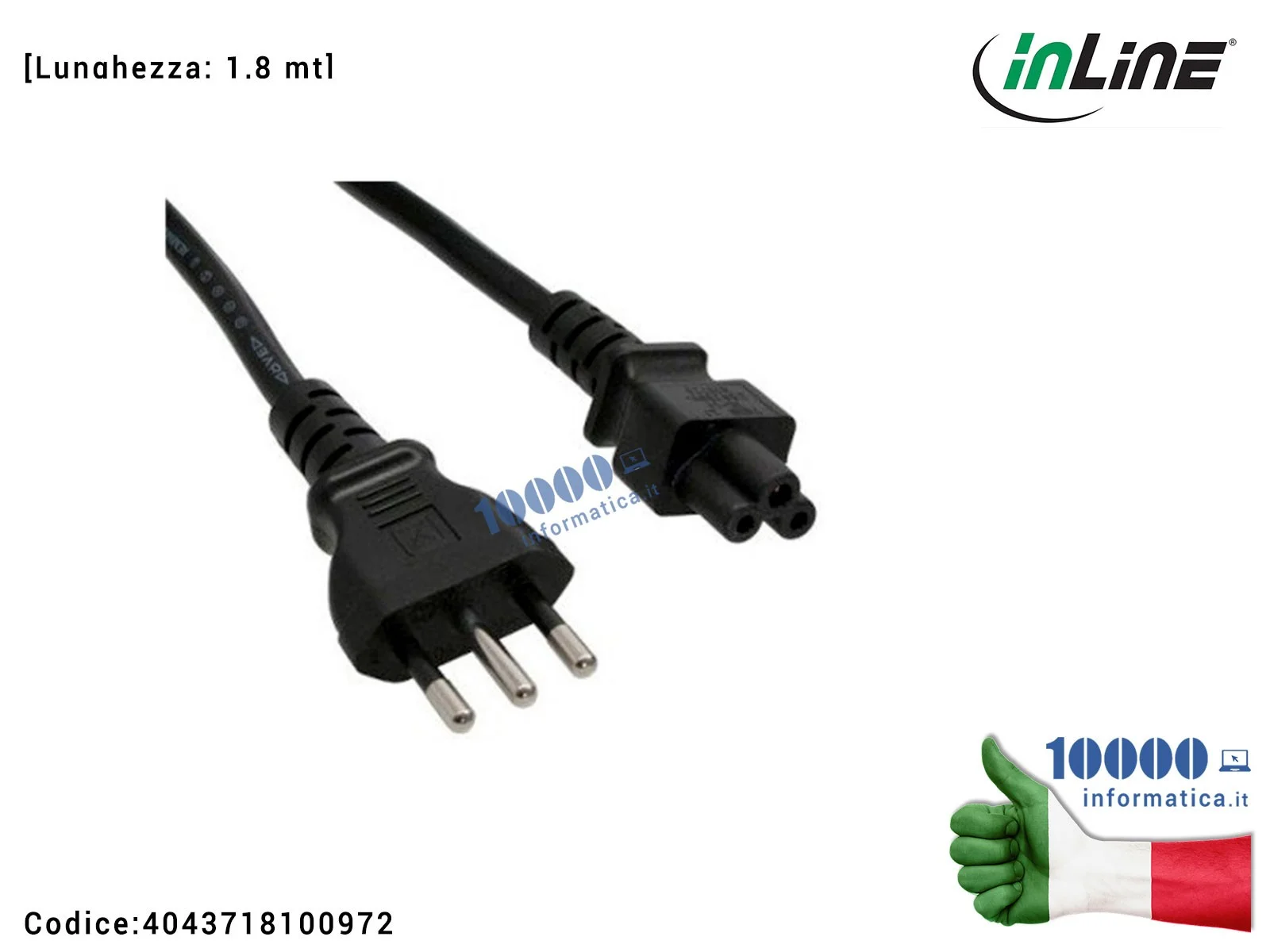 Cavo di Alimentazione C5 InLine (3 POLI) Corda Alimentatore Notebook Presa Spina Italiana EuroPlug EU CEE IEC-320-C5 IEC320C5 [1