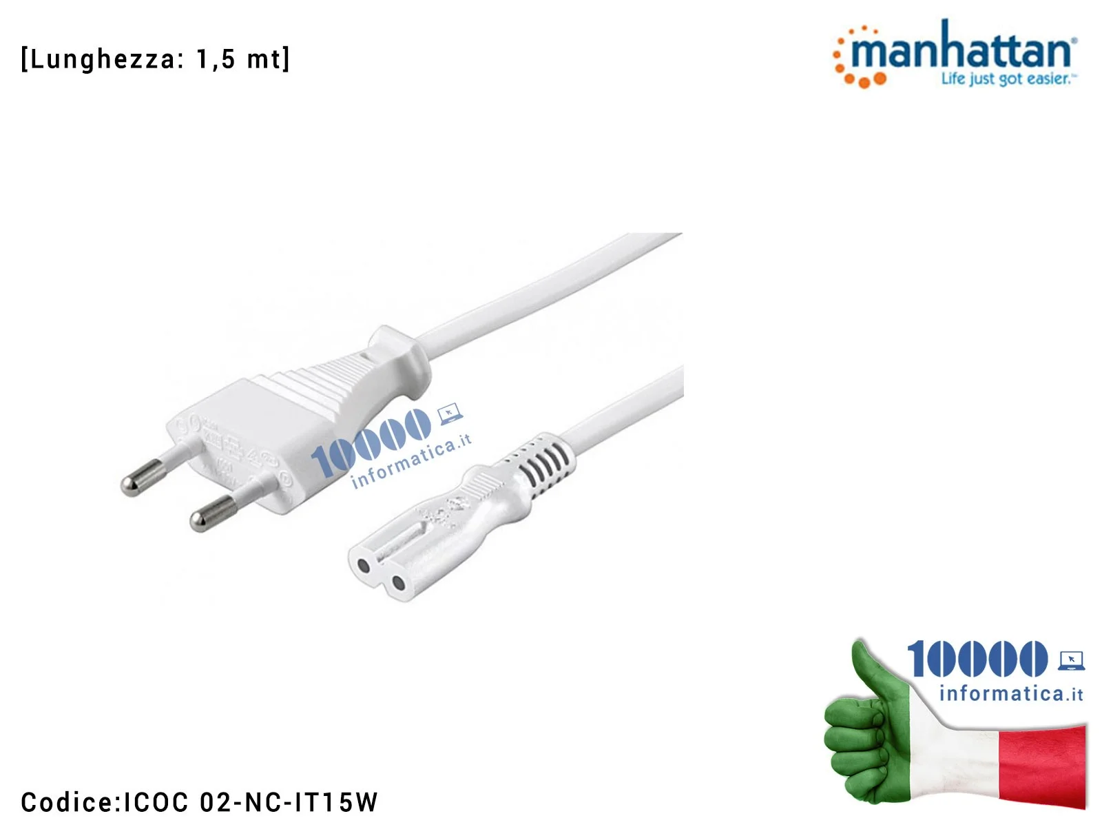 Cavo di Alimentazione C7 MANHATTAN (2 POLI) Corda Alimentatore Notebook Presa Spina Italiana EuroPlug EU CEE IEC-320-C7 IEC320C7
