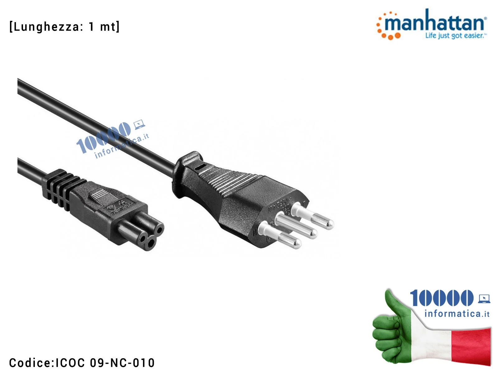 Cavo di Alimentazione C5 MANHATTAN (3 POLI) Corda Alimentatore Notebook Presa Spina Italiana EuroPlug EU CEE IEC-320-C5 IEC320C5