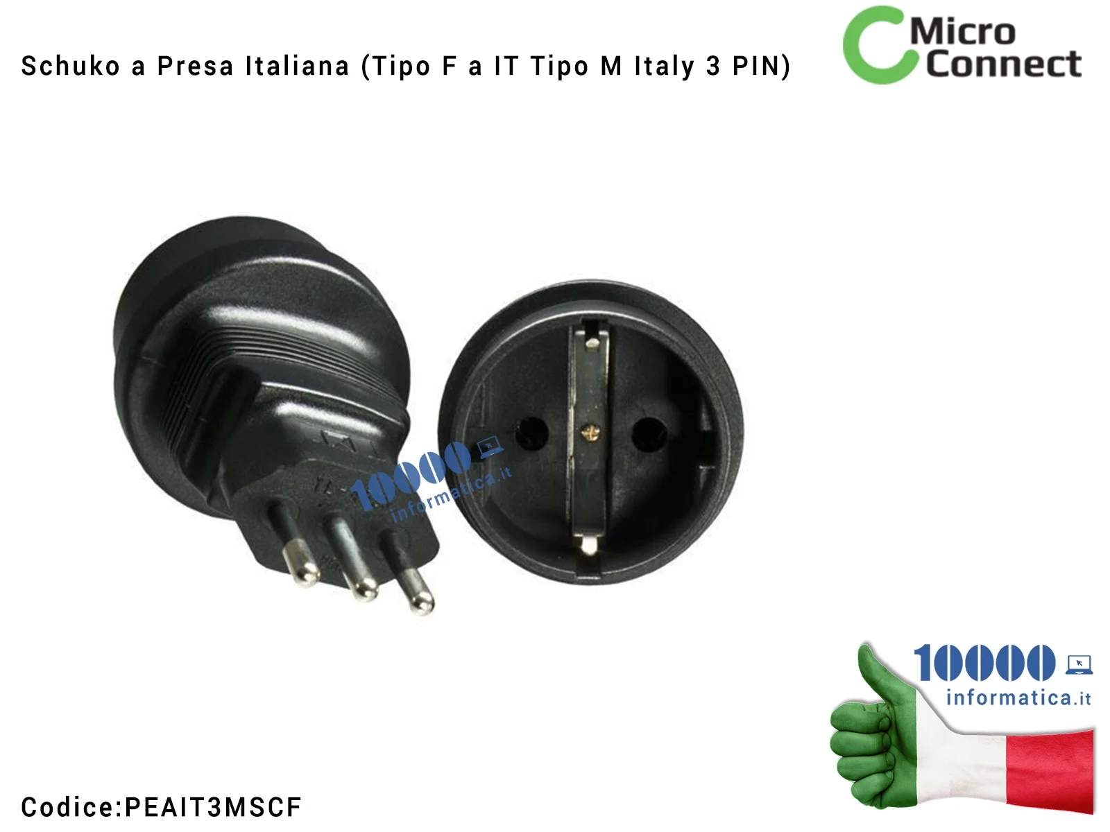 Adattatore Presa di corrente Schuko a Presa Italiana MICROCONNECT (Tipo F a IT Tipo M Italy 3 PIN) per Corda Alimentatore Notebo