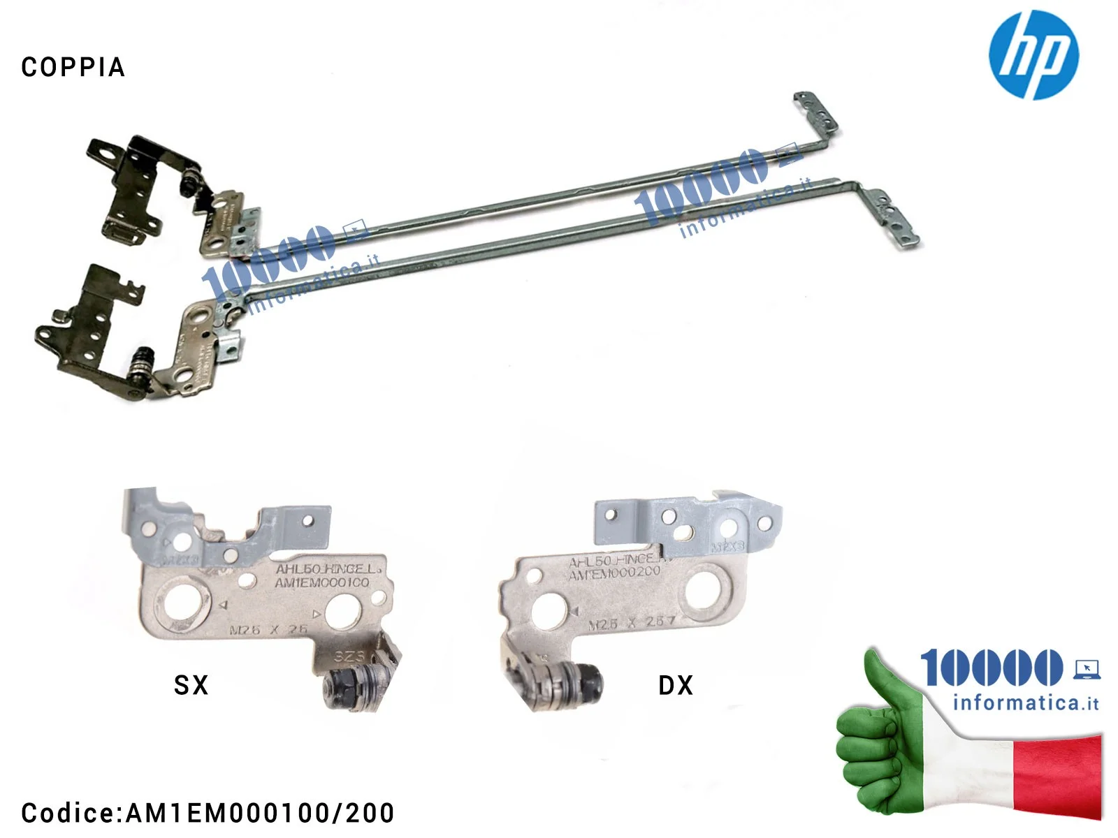 Cerniere Hinges LCD [COPPIA] HP 15-AF 15-AC 15-AY 15-BA 250 G4 255 G4 256 G4 [FORO PICCOLO] 813950-001 AM1EM000100 AM1EM000200 A