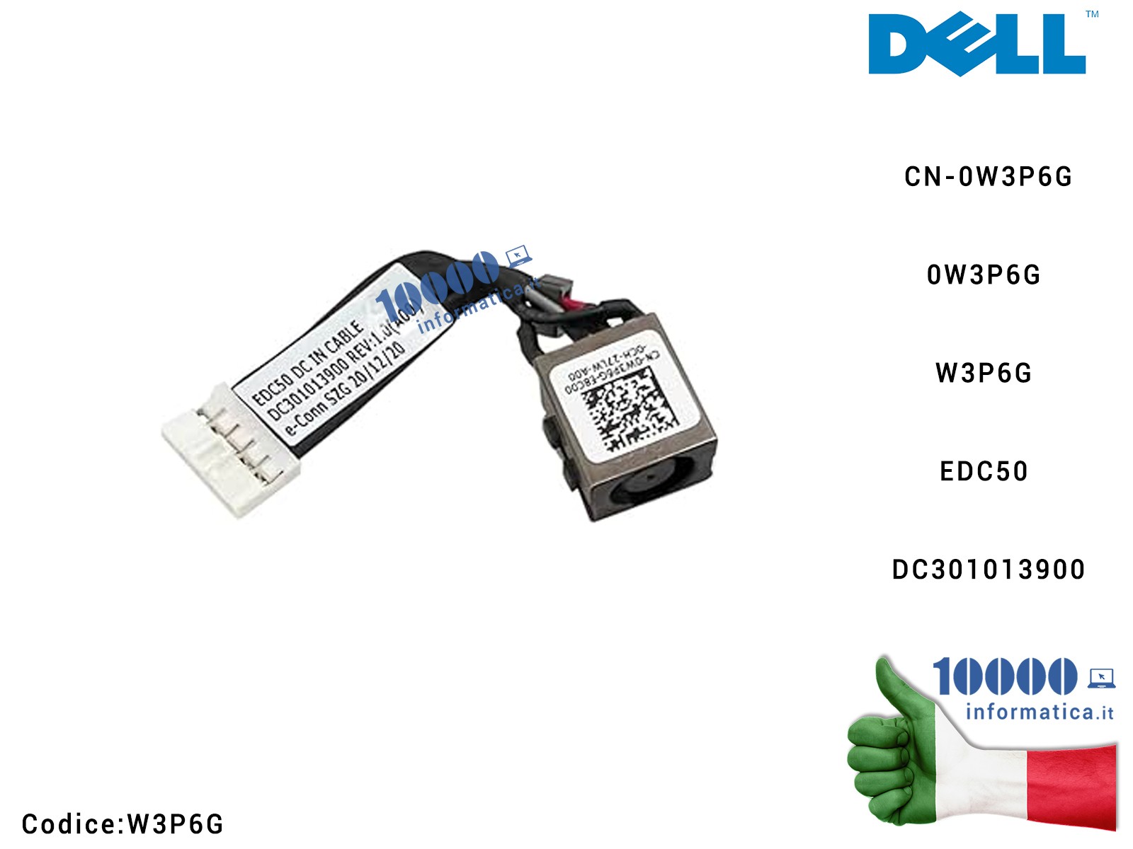 W3P6G Connettore DC Power Jack DELL Latitude 5500 (P80F) 5501 5502 5505 Precision 3540 3541 3542 CN-0W3P6G 0W3P6G W3P6G EDC50...