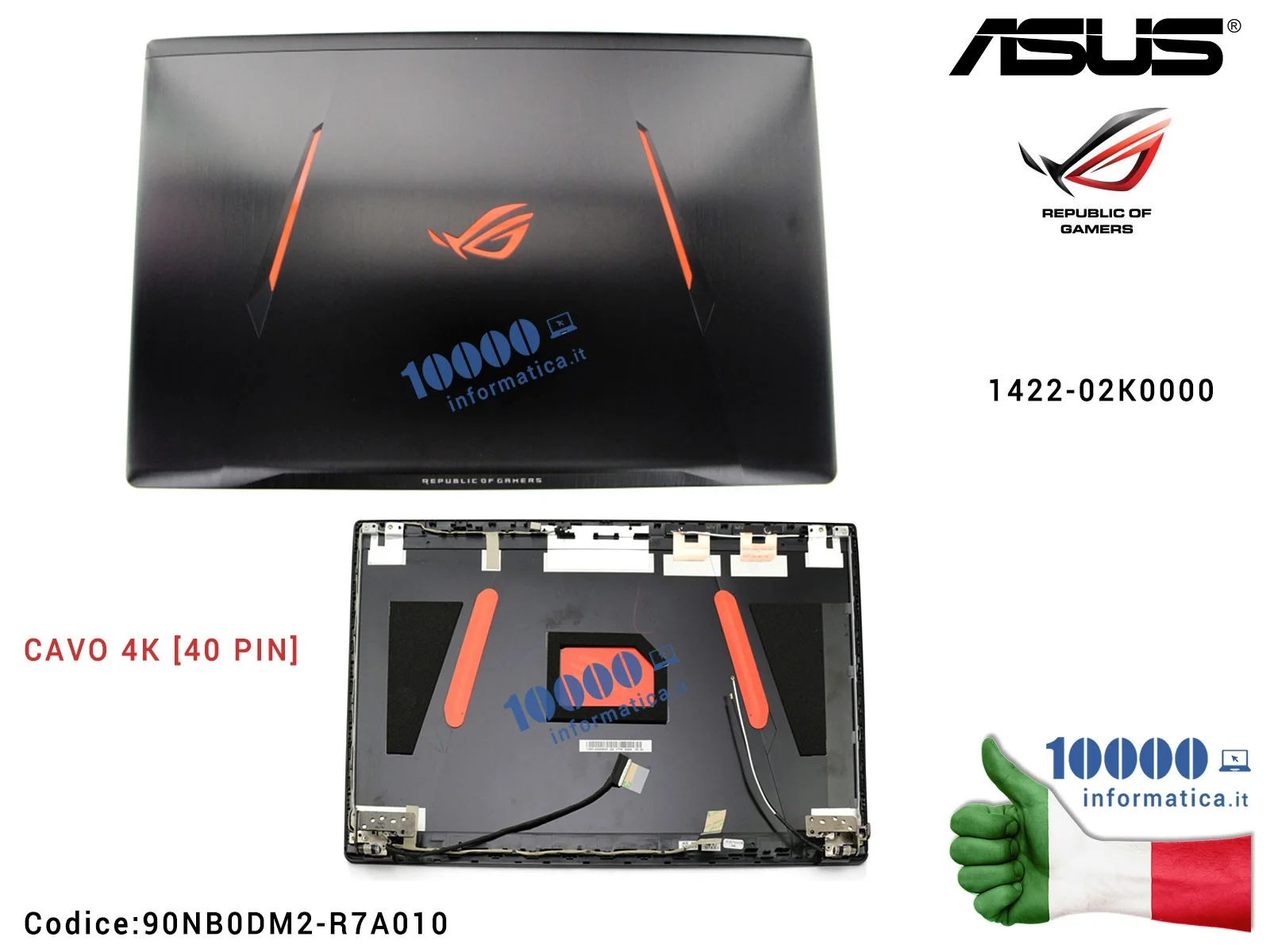 Cover LCD [4K 40 PIN] ASUS ROG Strix GL753 (NERO + LOGO ROG) GL753V GL753VD GL753VE GL753V FX753V FX753VD FX753VE 1422-02K0000