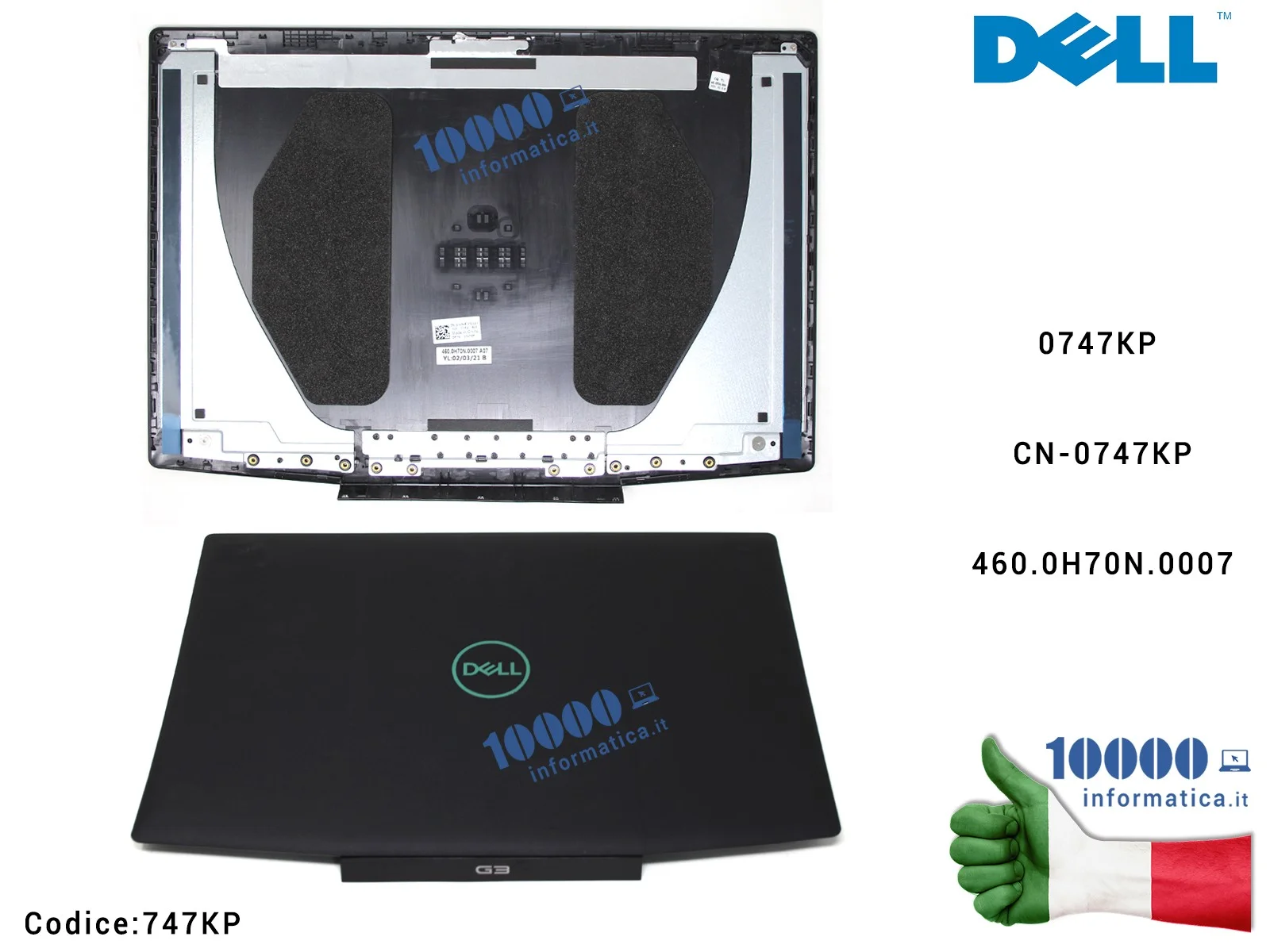 Cover ​LCD ​DELL ​G3 ​15 ​3590 ​3500 ​(NERO/LOGO ​BLU) ​0747KP ​CN-0747KP ​747KP ​460.0H70N.0007