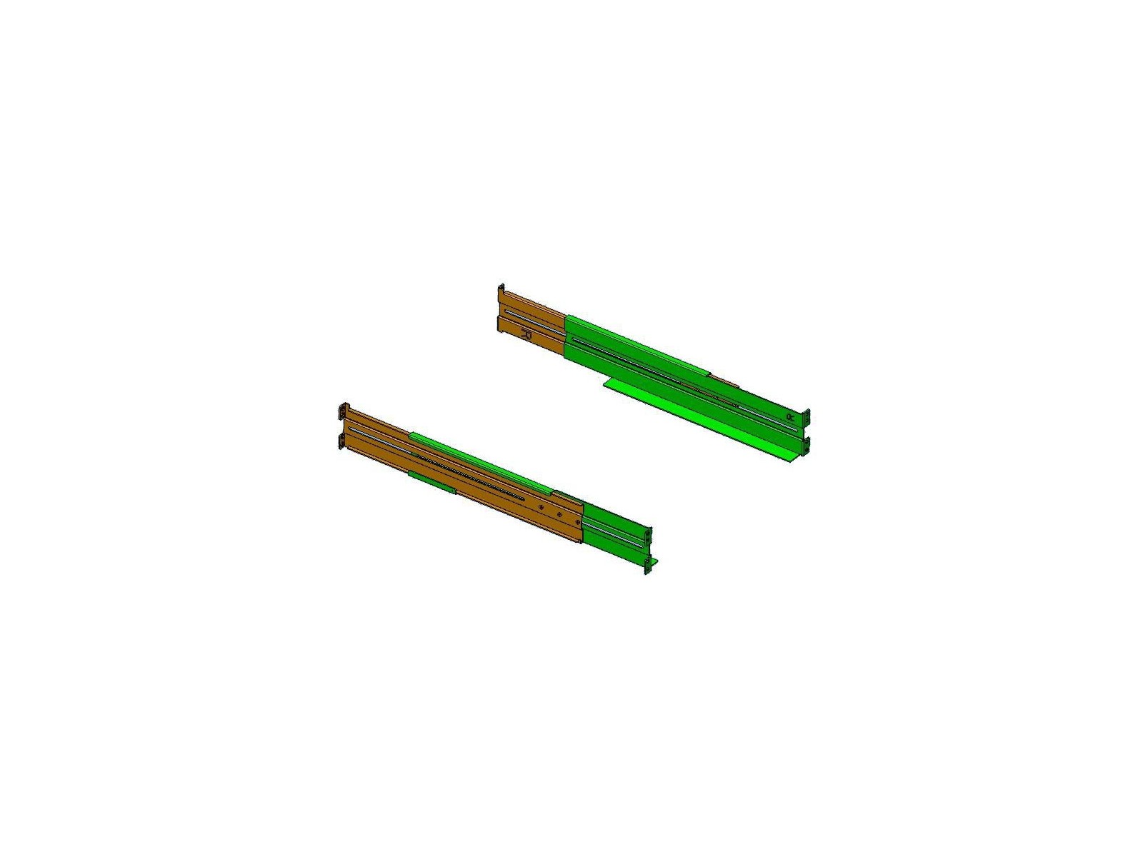 The rack-mount kit can be extended to 738mm. This enables to install the rack- mount kit into server cabinets with already locked support frames. This kit is also suitable for server cabinet up to 1200mm depth with middle support frame.