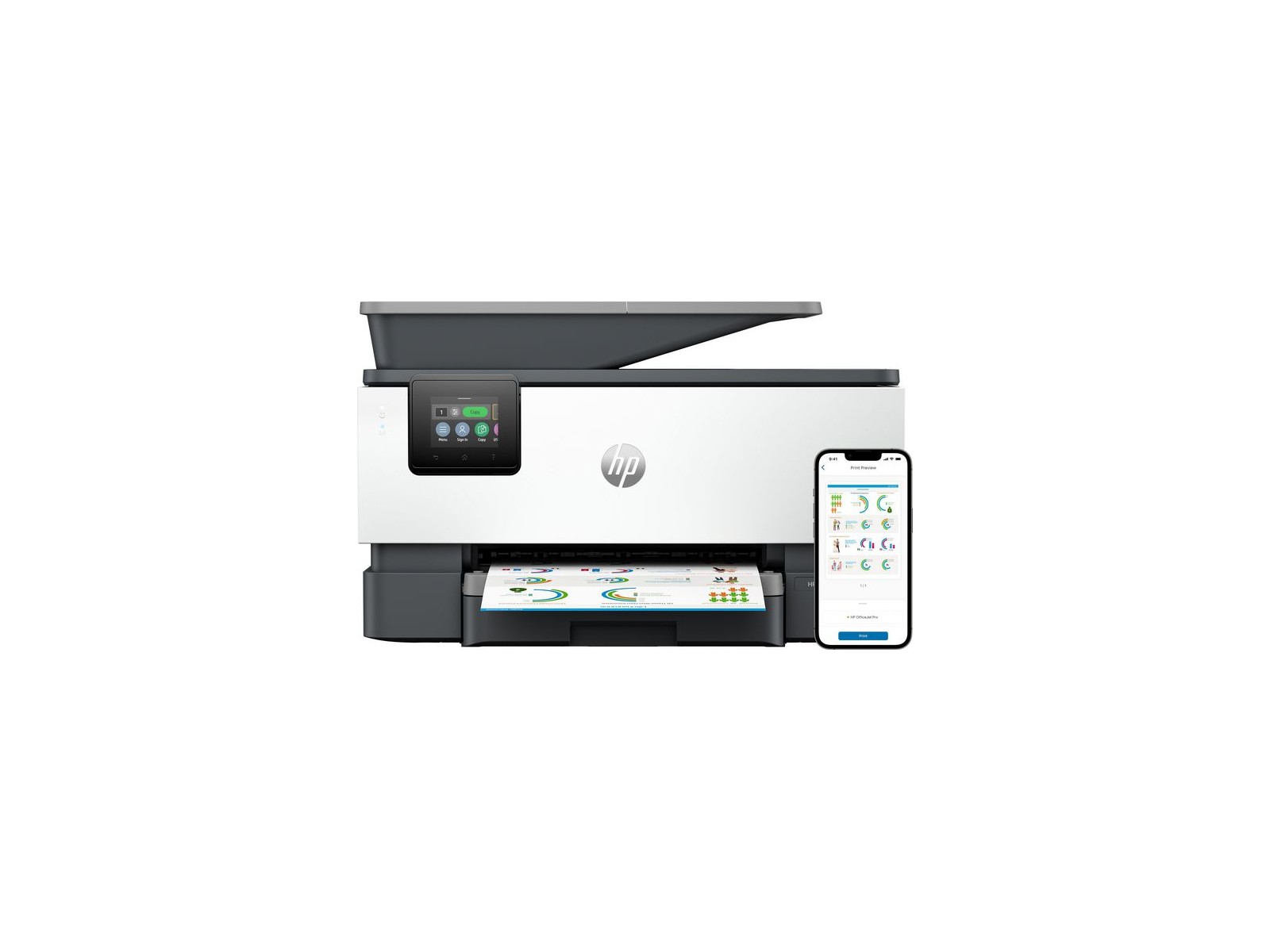 4V2N0B#629 HP OfficeJet Pro 9120b All-in-One Printer Color Printer for Home and home office Print copy scan fax Wireless; Two-sided printing; Two-sided scanning; Scan to email; Scan to pdf; Fax; Front USB flash drive port; Touchscreen; Print from phone or tablet; Automatic document feeder
