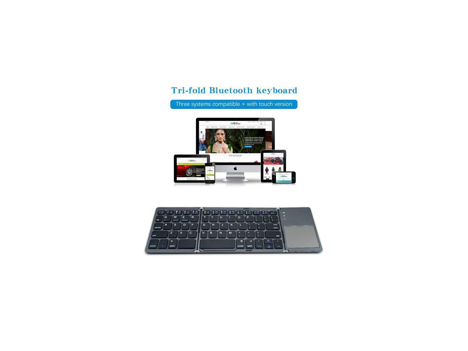 Foldable wireless US/English keyboard with touch, Dark Grey Bluetooth Version: 3.0 Working Hours: 45 Hours Unfolded size: L304.5mm*W97.95mm*H8mm Folded size: L152mm*W97*H18mm