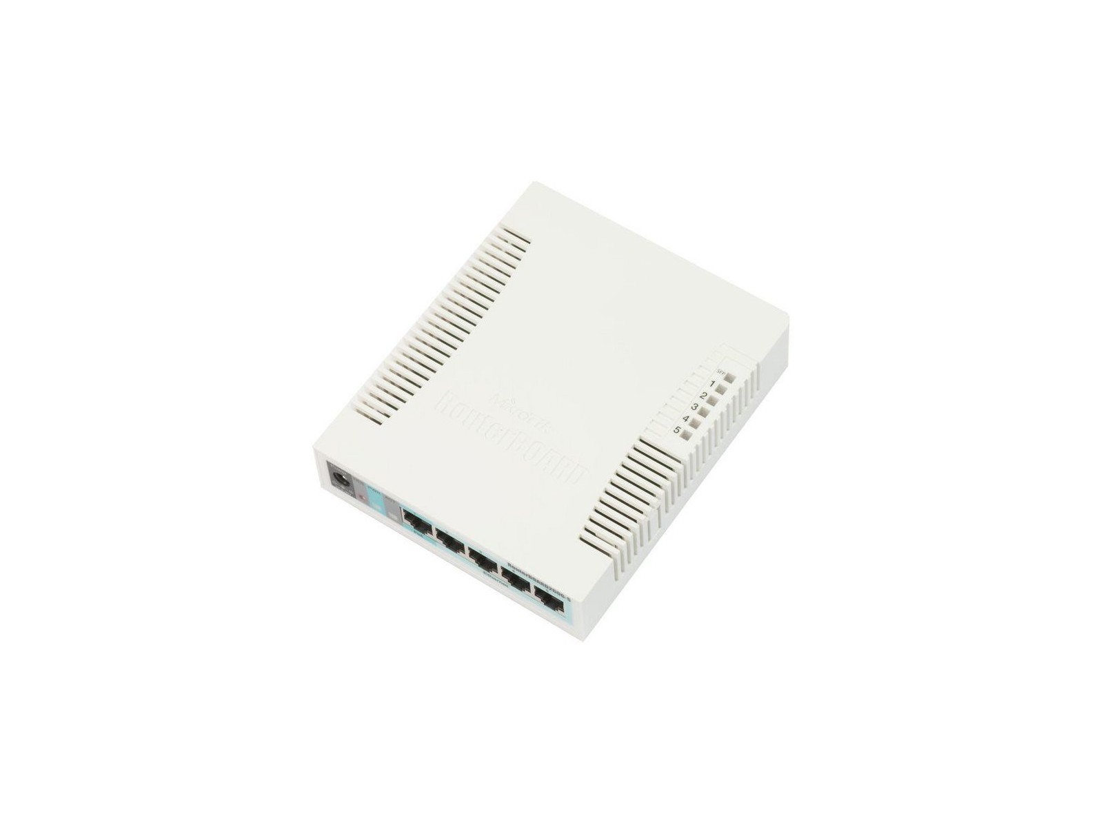 The RB260GS is a small SOHO switch. It has five Gigabit Ethernet ports and one SFP cage powered by an Atheros Switch Chip.