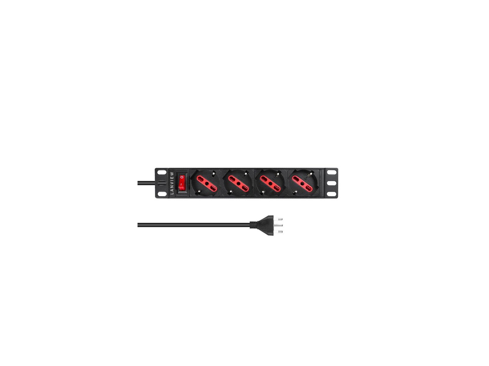 LVR-2MIT-SW-IT4 Lanview 10'' rack mount power strip 2m 13A with 4 x Schuko/italian type socket