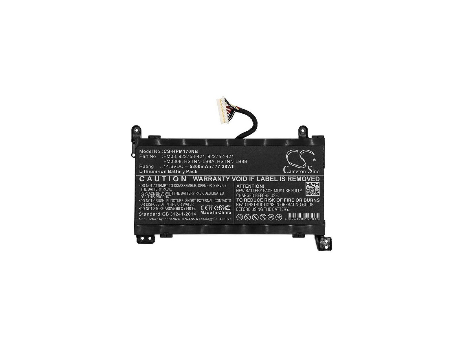 MBXHP-BA0214 CoreParts Laptop Batteria for HP 77WH Li-ion 14.6V 5.3Ah with 12pins connector for Omen 17-AN Omen 17-AN003NI Omen 17-AN004NO Note: For 16 pin connector please order MBXHP-BA0219 instead 922752-421 922753-421