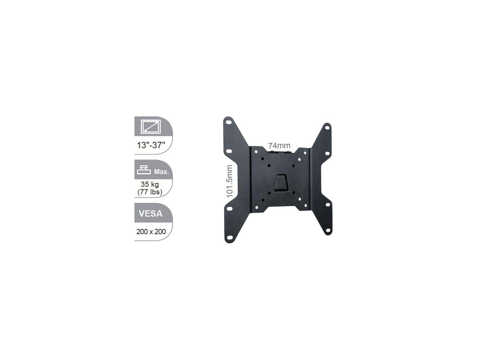 Design Product colour Black RoHS compliance Yes Ergonomics Height adjustment Yes Legal Information EU ECCN Code N/A UNSPSC Code (Icecat) 43212002 US ECCN Code EAR99 Mounting Maximum screen size 37 " Maximum VESA mount 200 x 200 mm Maximum weight capacity 35 kg Minimum screen size 13 " Minimum VESA mount 50 x 50 mm Mounting type Wall Panel mounting interface 100 x 100/100 x 200/200 x 100/200 x 200/50 x 50/75 x 100/75 x 75 mm Suitable for Computer monitor / TV Other Caratteristiche Adjustable Yes Mounting interface VESA VESA mounting Yes Package dimensions (verified) Depth Verified 22,6 cm Gross Weight Verified 0,756 kg Height Verified 3 cm Width Verified 22,9 cm Packaging content Manual Yes Mounting kit Yes Screws included Yes User guide Yes Product dimensions Net Weight (Product kg) 0,656 kg Product Depth 1,2 cm Product Height 10,15 cm Product Width 10,15 cm ^ Brand Name Vivolink * 12 Anno(i) Categorie Categoria principale Soluzioni ProAV Sottocategoria Supporti e mobili Sottocategoria Display e monitor Sottocategoria Supporti e stand per monitor