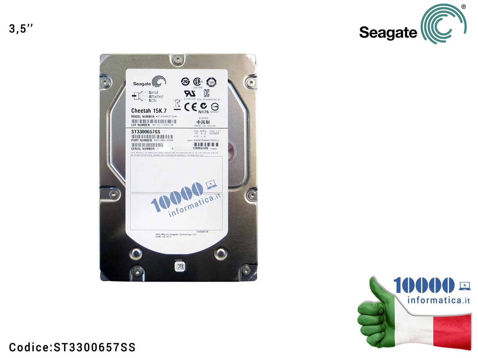 Hard Disk Server 3,5'' 300GB SEAGATE SAS 6Gb/s 15K 15000rpm ST3300657SS Cache 16MB Cheetah 24x7 Enterprise Edition