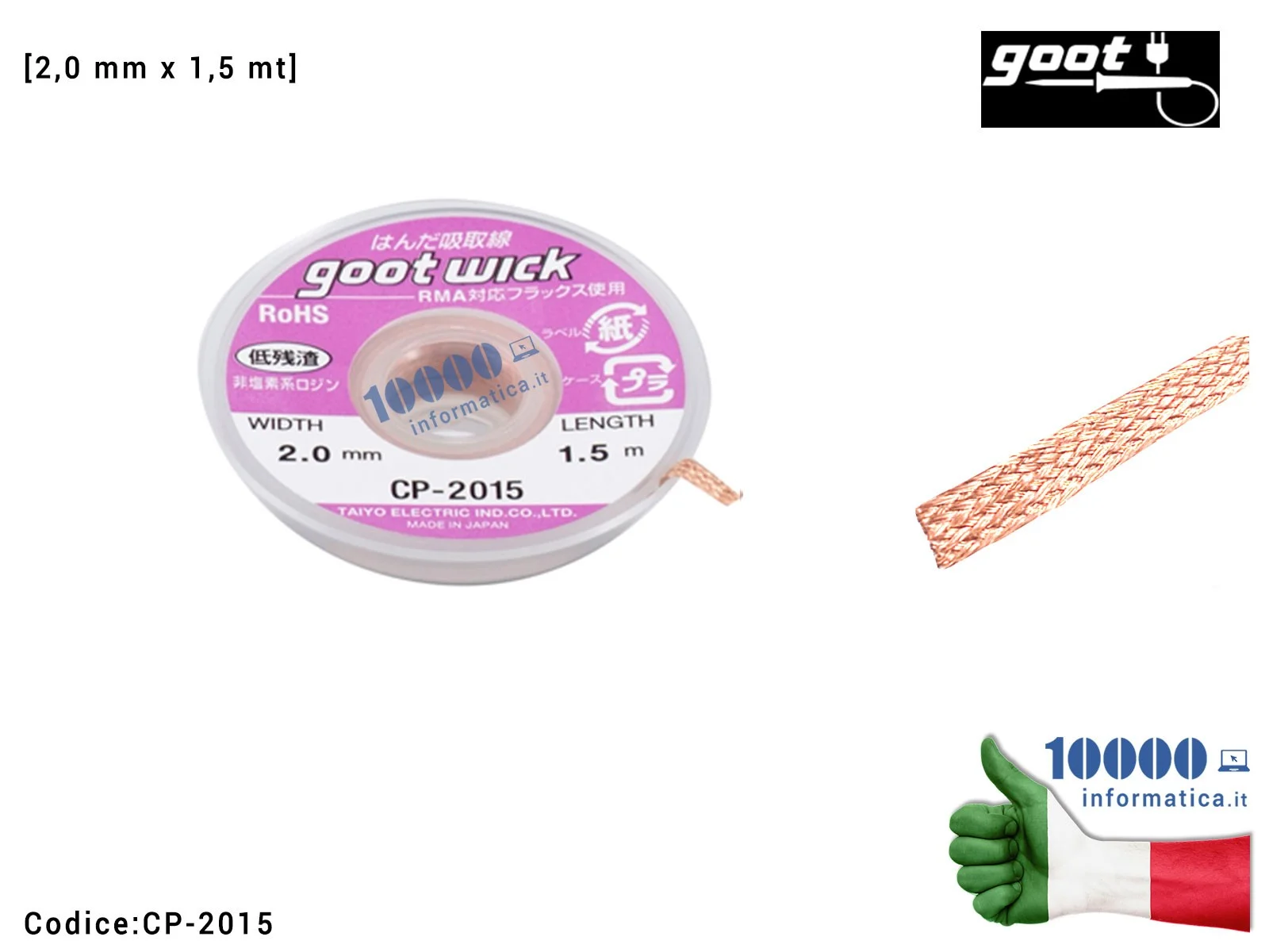 Treccia Dissaldante in Rame GOOT WICK CP-2015 [2,0mm x 1,5m] Trecciola Assorbi Stagno Desoldering Wire