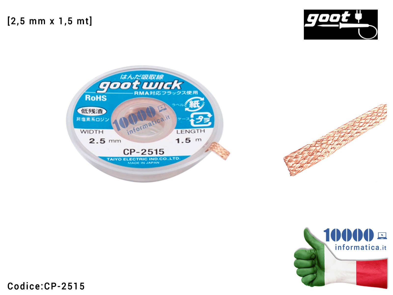Treccia Dissaldante in Rame GOOT WICK CP-2515 [2,5mm x 1,5m] Trecciola Assorbi Stagno Desoldering Wire