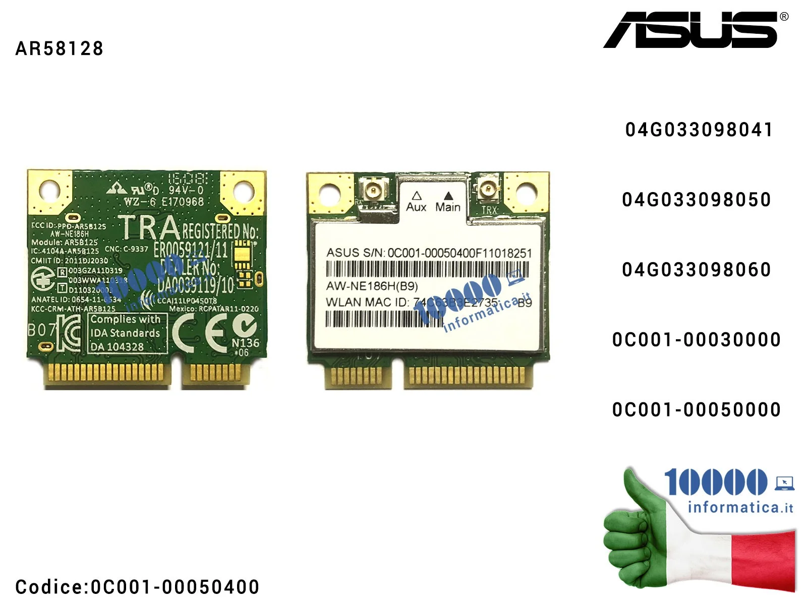 Scheda Wireless WiFi 802.11B/G/N (1*1) RST Wi-Fi WLAN AR58128 ASUSK53 K54C K55 K56 K73 K75 K84 K93 K95 N46 N56 N76 S550C X200 X2