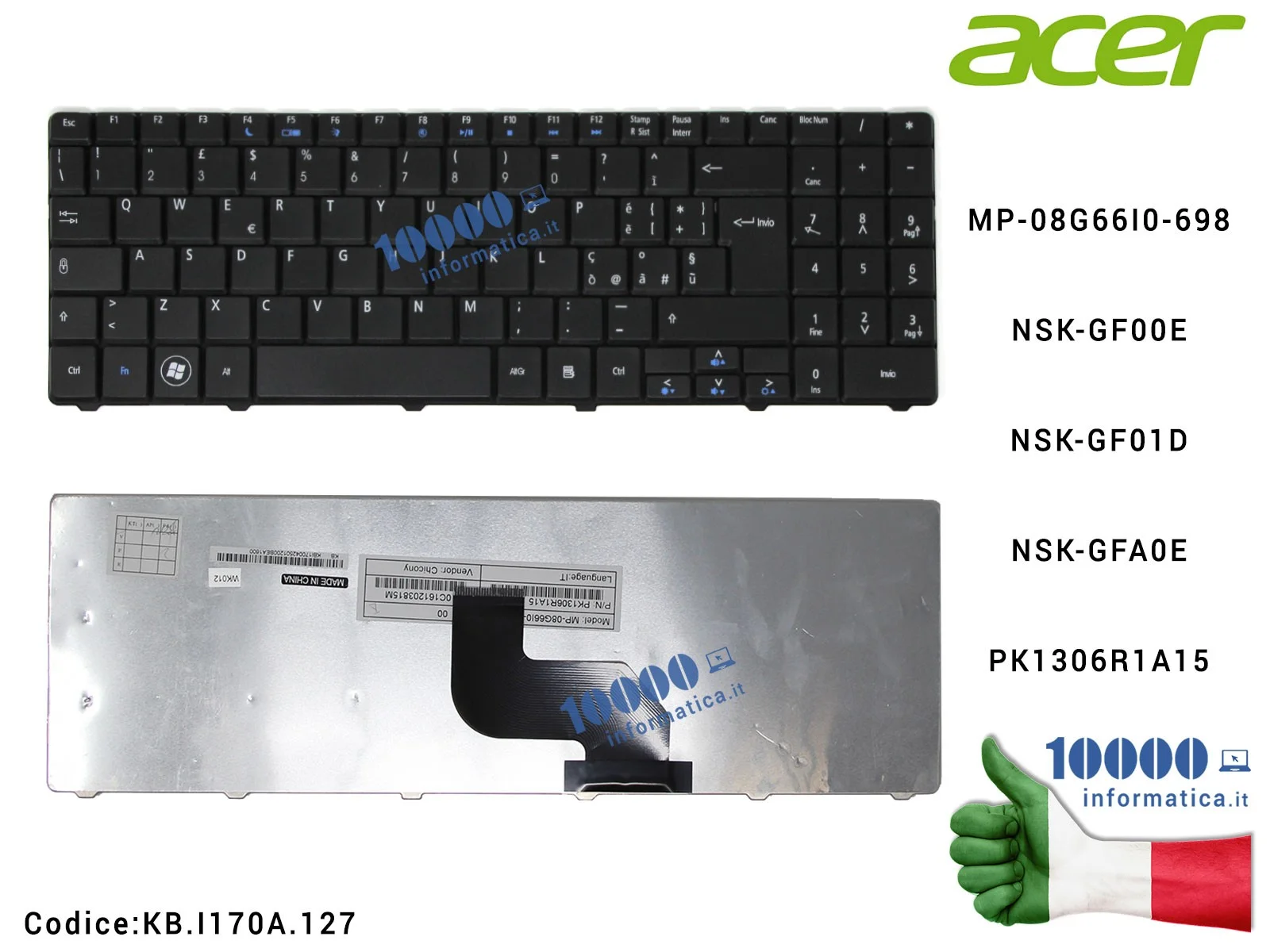 Tastiera Italiana ACER Aspire 5516 5517 5241 5332 5532 5541 5541G 5732Z (NERA)