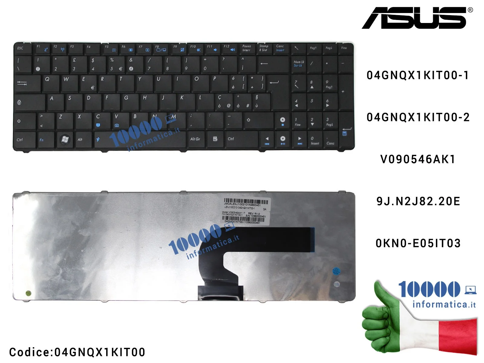 Tastiera Italiana ASUS F50Q F50SF F50SV F50Z F70SL K52DE K52DR K52F K52JB K52JC K52JE K52N K72F K72JK K72JR N50VN N51VF N51VG N6
