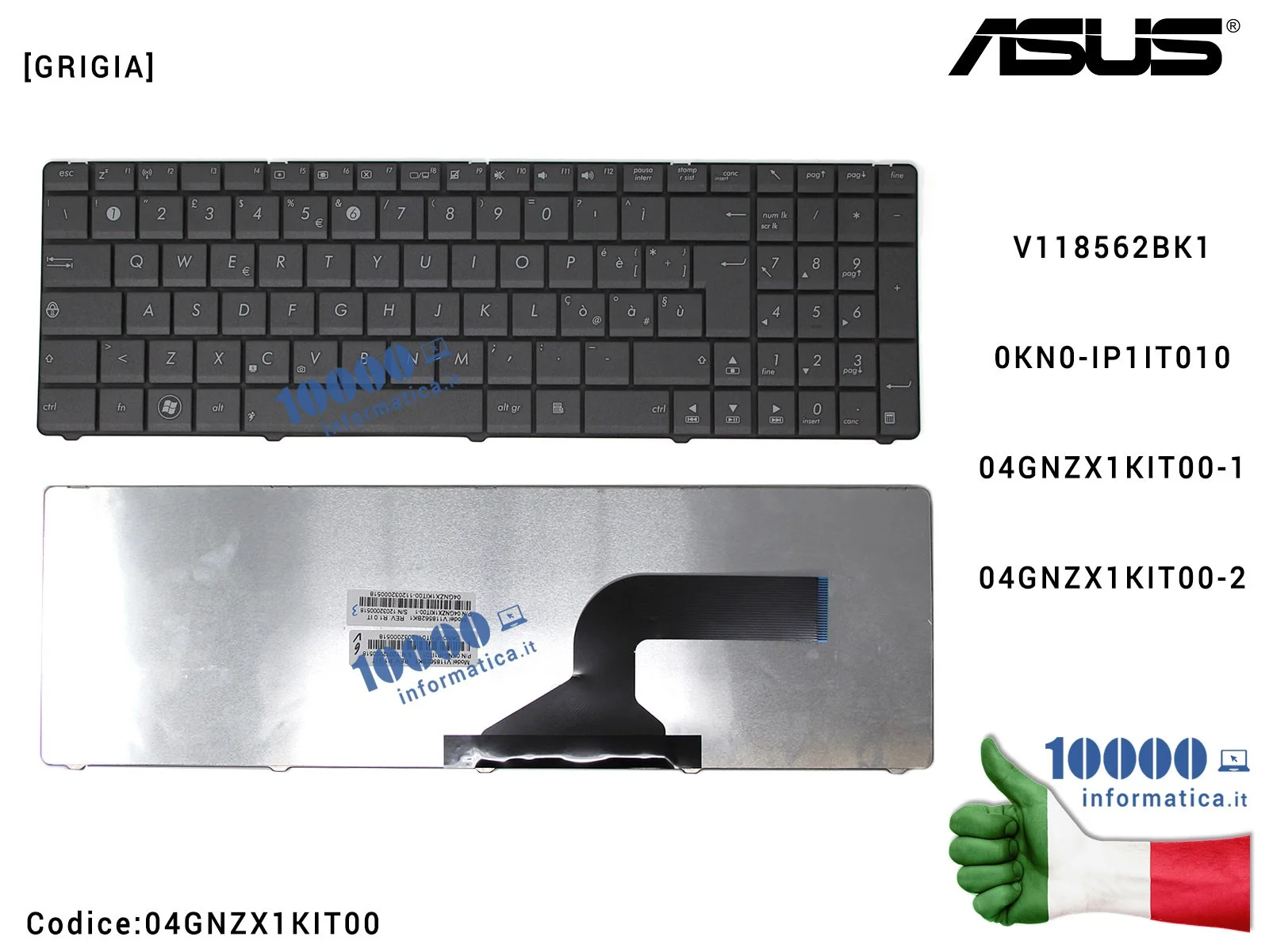 Tastiera Italiana ASUS (GRIGIO) N53 N53JN P52 P52JC P52F N73 N73J N73JQV118562BK1 0KN0-IP1IT01004GNZX1KIT00-1 04GNZX1KIT00-2