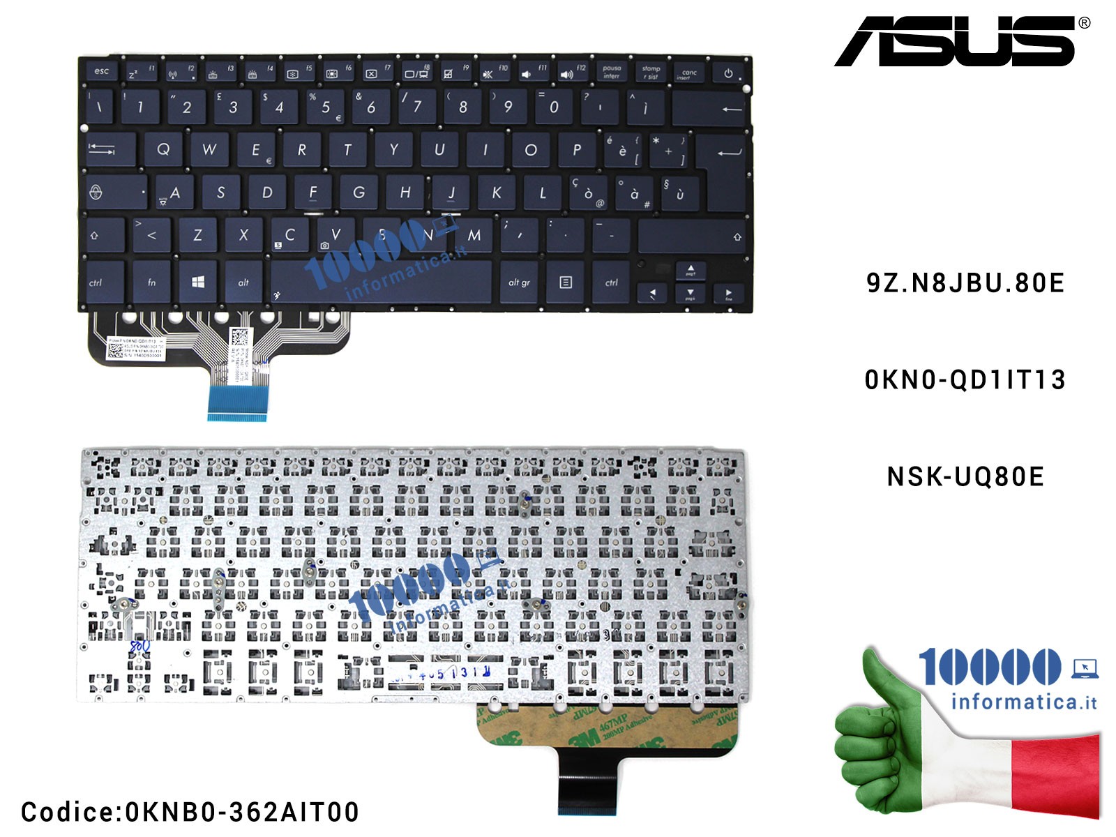 Tastiera Italiana ASUS ZenBook UX301L UX301LA [SENZA FRAME] 9Z.N8JBU.80E 0KN0-QD1IT13 NSK-UQ80E