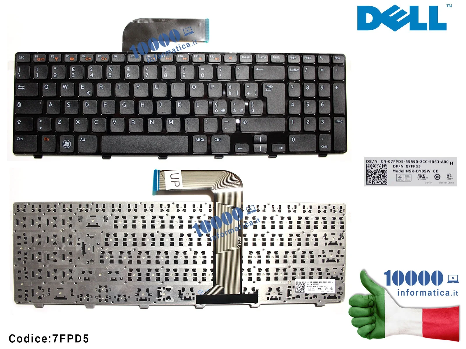 Tastiera Italiana DELL Inspiron N5110 (15R) M5110 9Z.N5YSW.00T DY0SW 9Z.N5YSW.00E 07FPD5