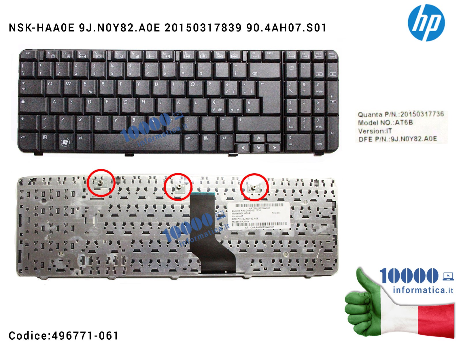 Tastiera Italiana HP Compaq Presario CQ60 G60 496771-061 NSK-HAA0E 9J.N0Y82.A0E 20150317839 90.4AH07.S01