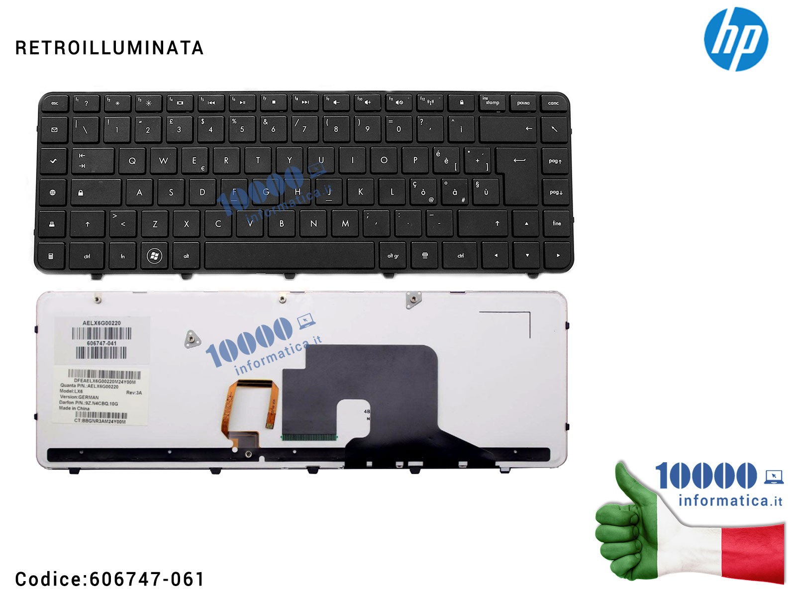 Tastiera Italiana Retroilluminata HP Pavilion DV6-3000 DV6-3100 DV6-3200 606747-061