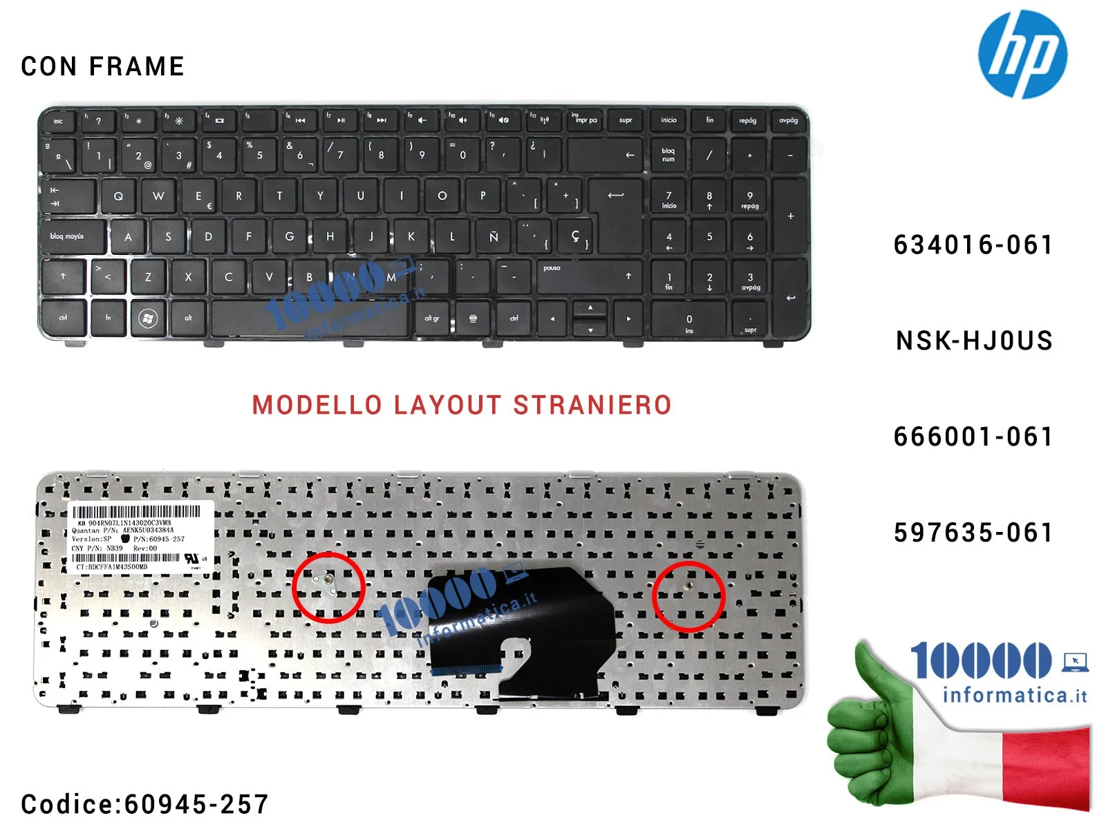 Tastiera Straniera HP DV7-6000 DV7-6100 (CON FRAME) [LAYOUT TRASF. ADESIVI ITALIANO]