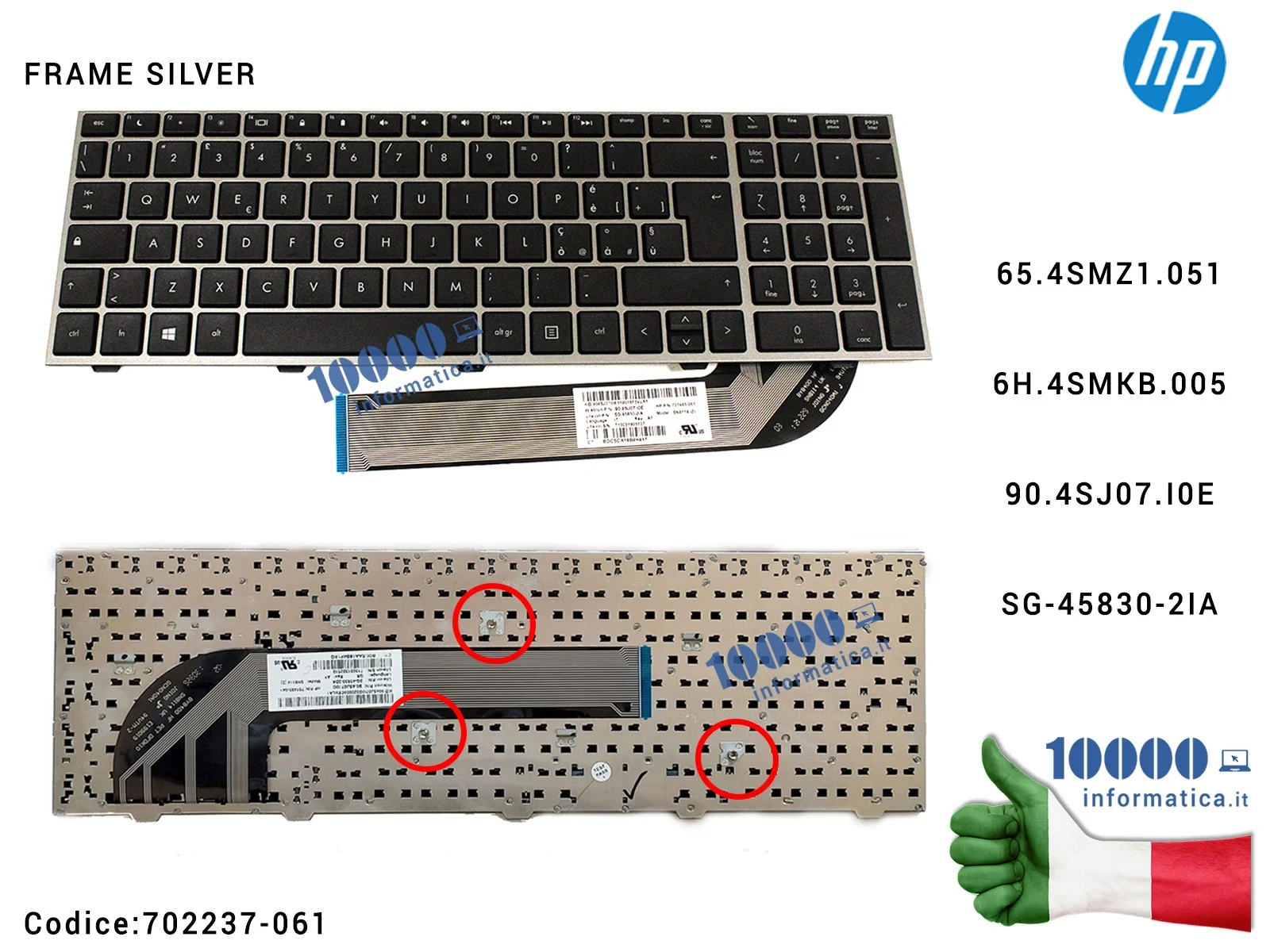 Tastiera Italiana HP ProBook 4540S 4545S (FRAME SILVER) 683491-061701485-061 708433-061 65.4SMZ1.051 6H.4SMKB.005 90.4SJ07.I0E S