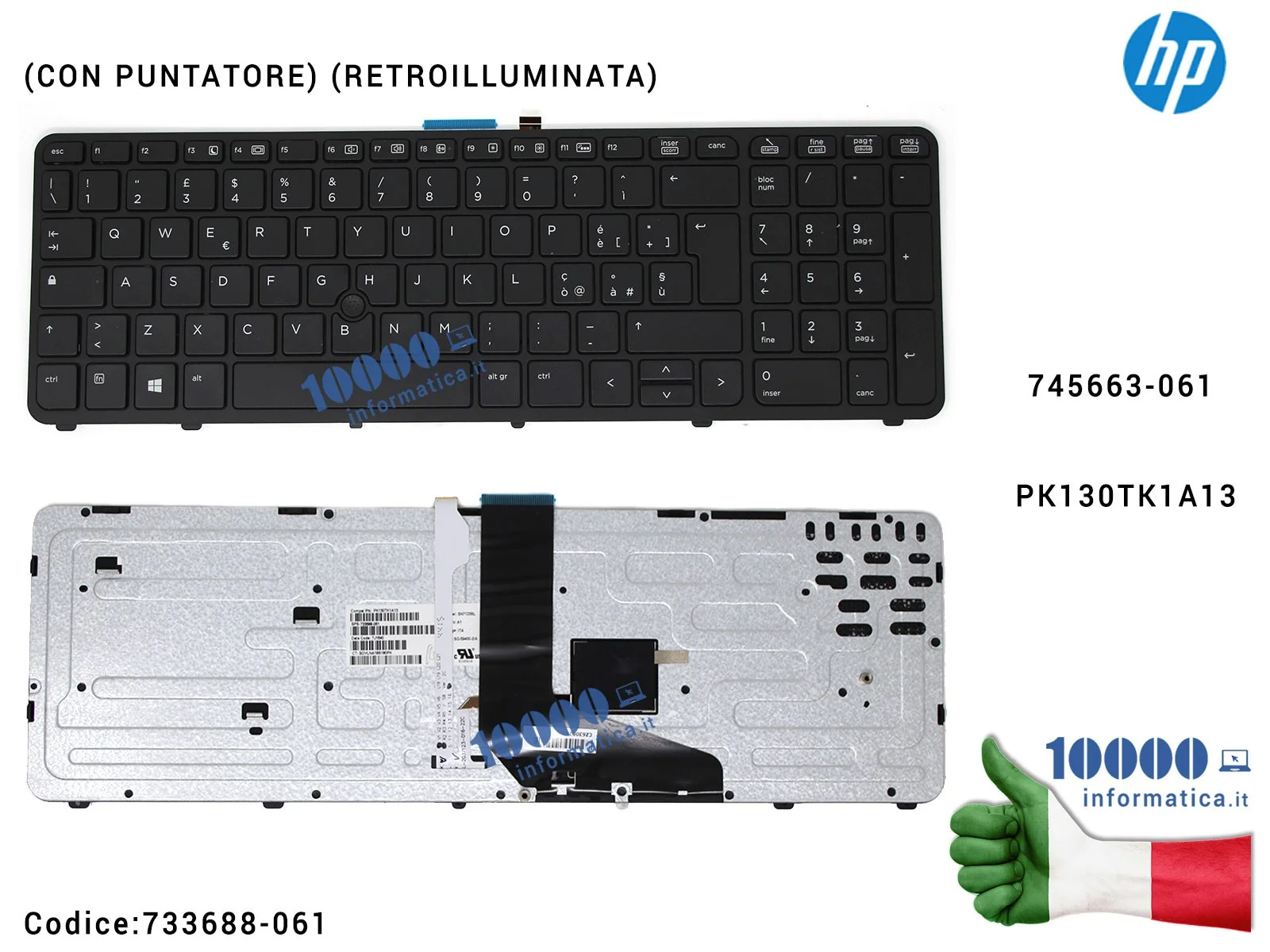 Tastiera ​Italiana ​HP ​ZBook ​15 ​17 ​15 ​G2 ​17 ​G2 ​EliteBook ​850 ​G2 ​(RETROILLUMINATA) ​745663-061 ​PK130TK1A13