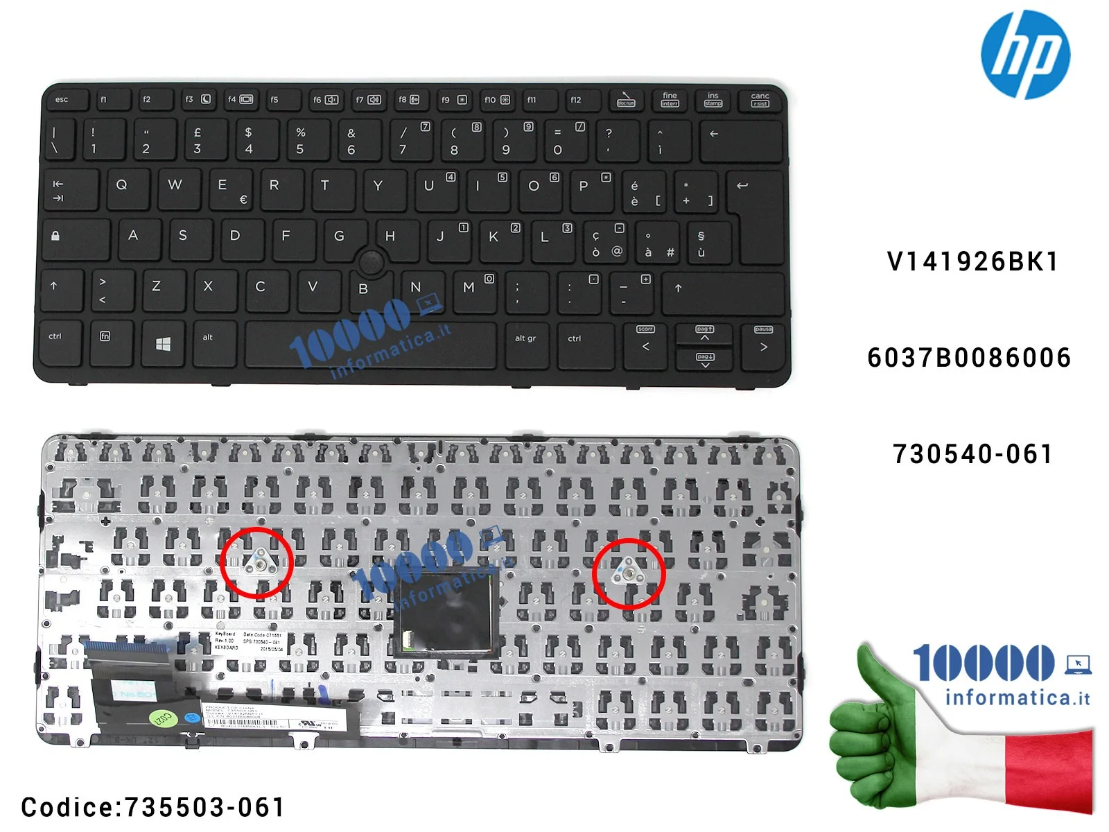 Tastiera ​Italiana ​HP ​EliteBook ​820 ​G1 ​720 ​G1 ​(NERA) ​V141926BK16037B0086006 ​730540-061